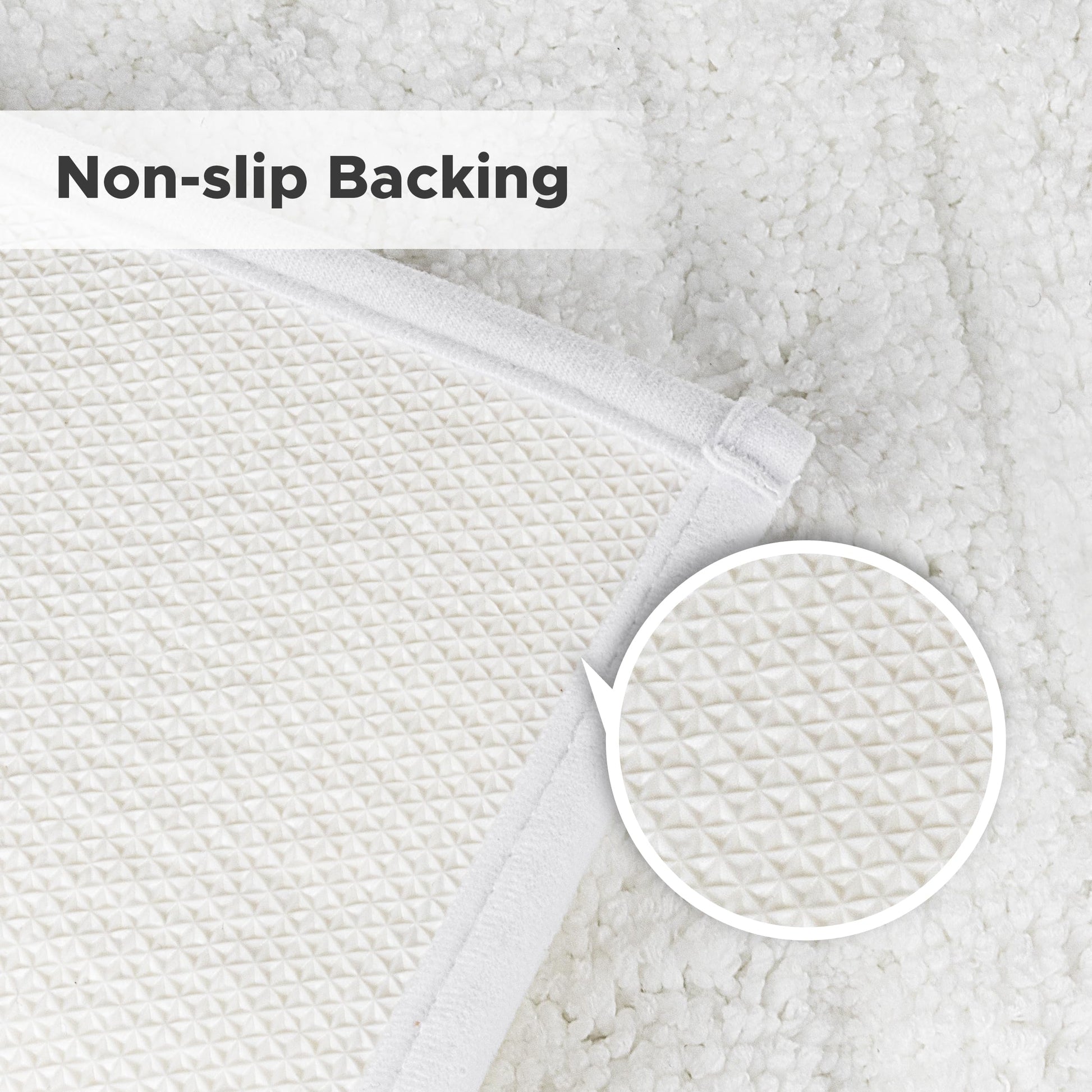 • [ Non-Slip and Ultra-Absorbent ] TPR webbing on the back of this mat prevents it from slipping or shifting, making it safe for wet bathroom floors. The thick shag is ultra-absorbent, which keeps your bathroom floor dry when stepping out of the bath, shower, spa or getting ready by the sink.