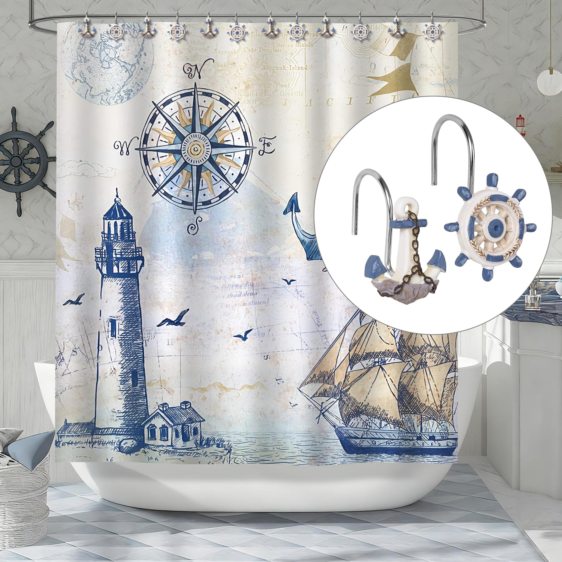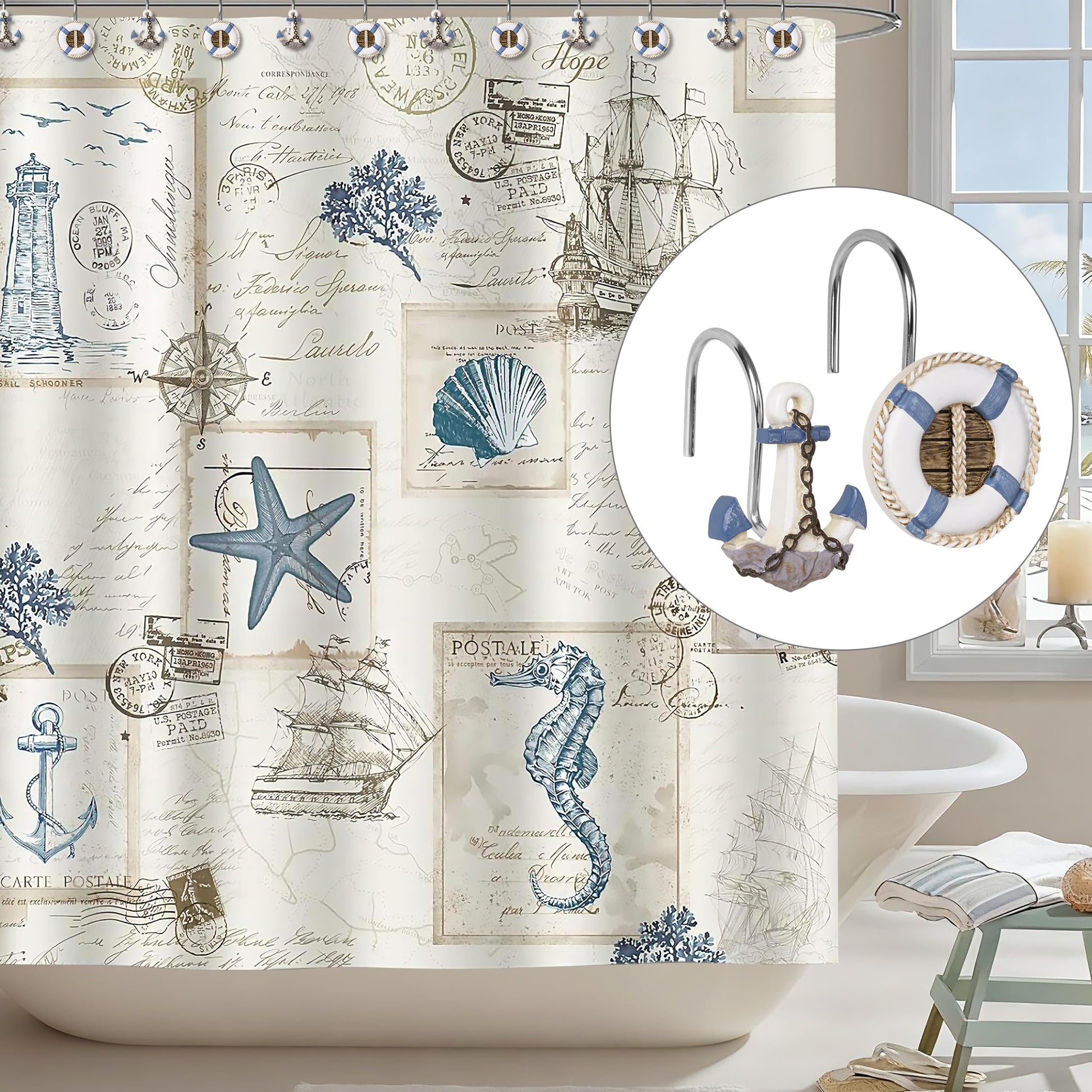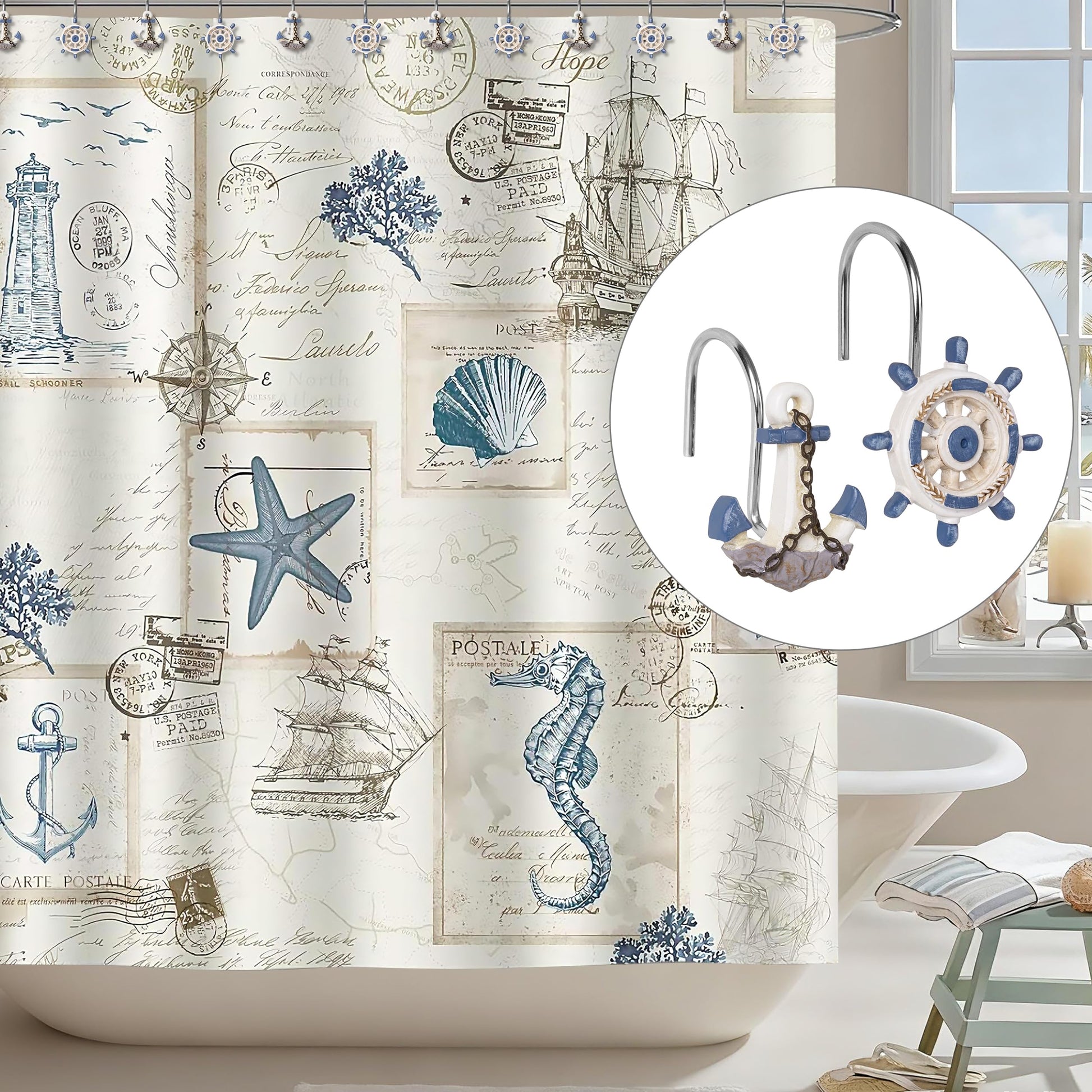 - The nautical shower curtain hooks deliver a more aesthetic vibe to your bathroom decor! Each set gets 2 designs (6 pcs/design).