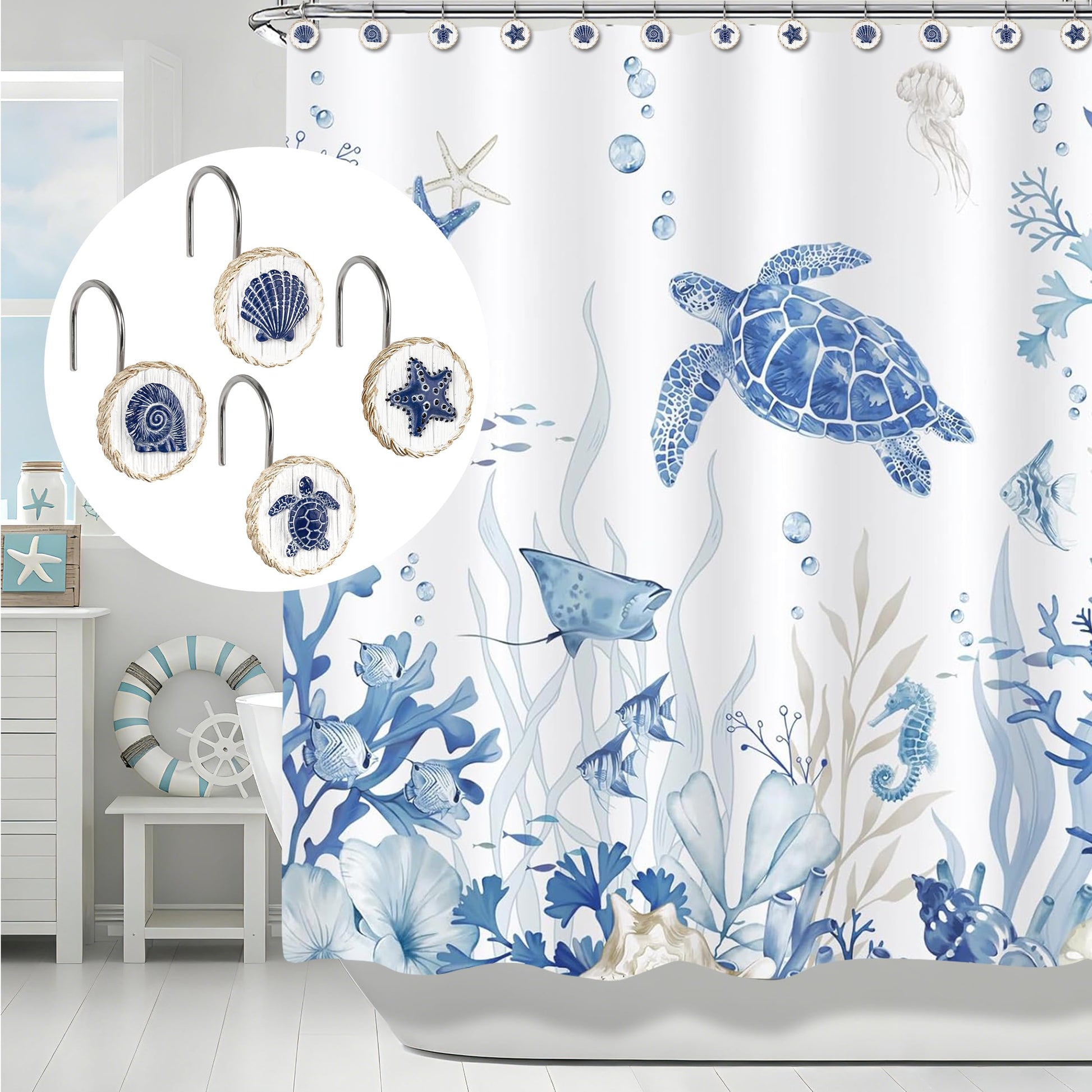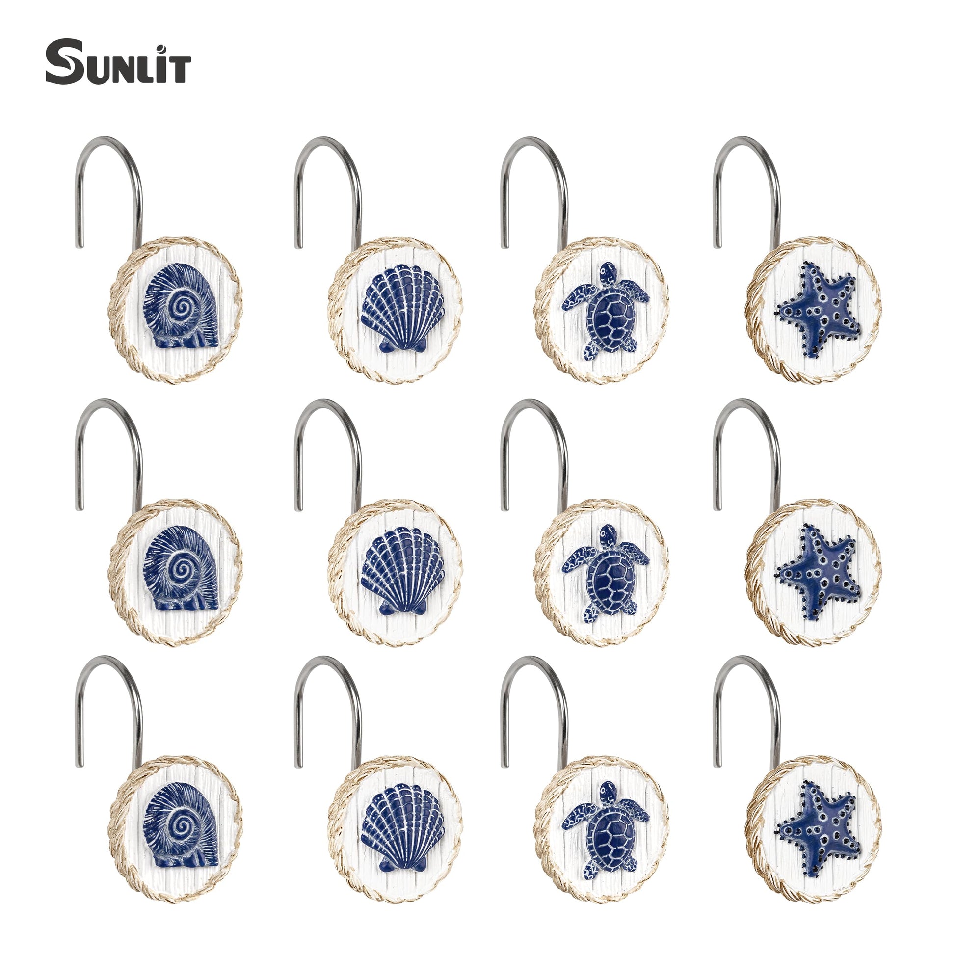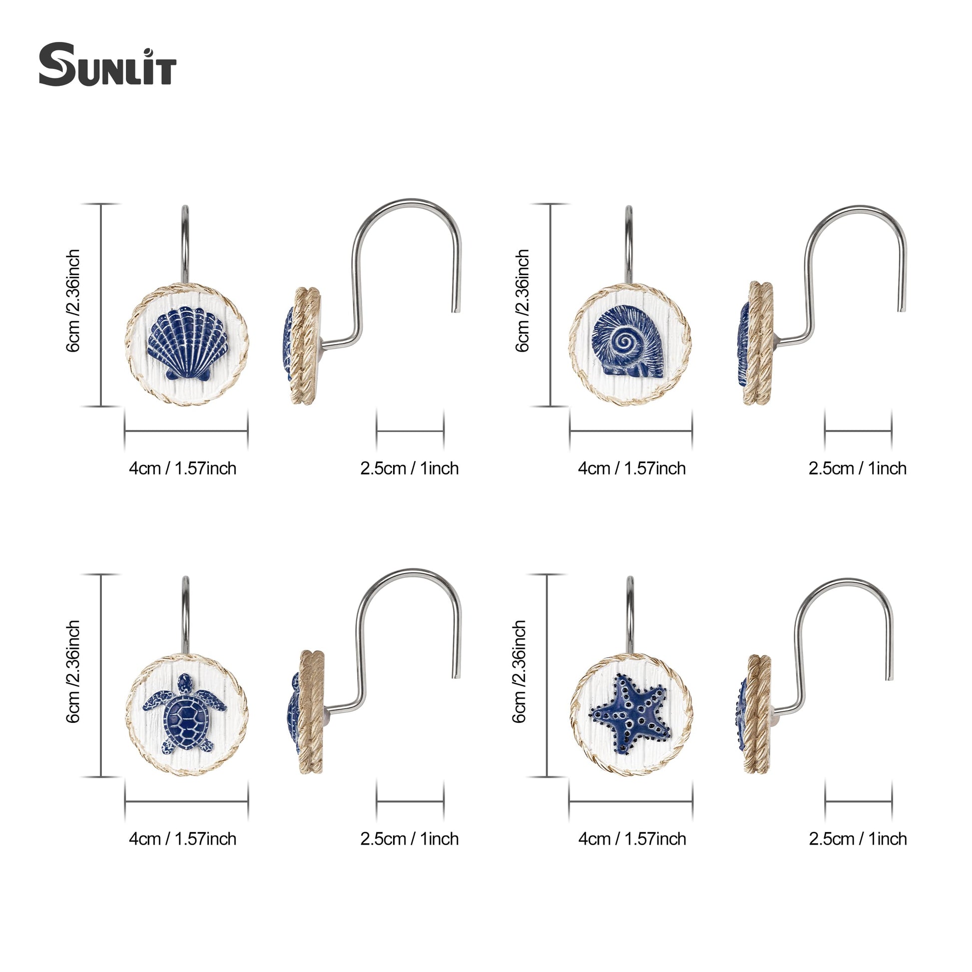 - The ocean themed shower curtain hooks deliver more aesthetic vibe to your bathroom decor! Each set gets 4 designs (3 pcs/design).