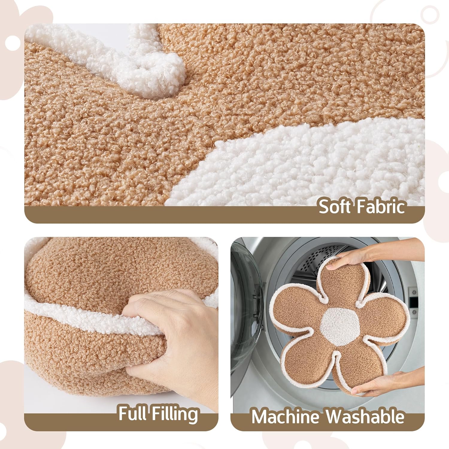 - 🌼 [ Adorable Flower-haped Design ] Floral design goes well with most decorations. They serve both an aesthetic and functional purpose. We offer various color options, each creating a unique decorative effect. This distinctive design suits a multitude of occasions, whether you're using it as a pillow, cushion, floor seating, or decoration. It effortlessly infuses warmth and coziness into guest rooms, living areas, bedrooms, offices, and even cars.