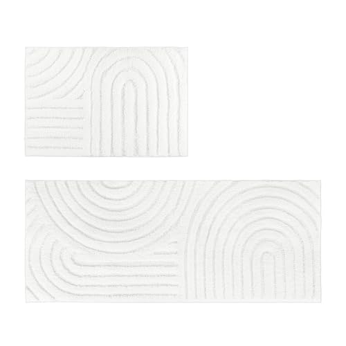 - [ Comfortable and Mild to Skin ] The fluffy 1cm and 2.5cm shag material is soft and kind to skin, keeping your feet protected and comfortable. The alternating distribution of high pile and low pile gives our pattern a more three-dimensional feel, and effectively increases the water absorption capacity of the carpet.