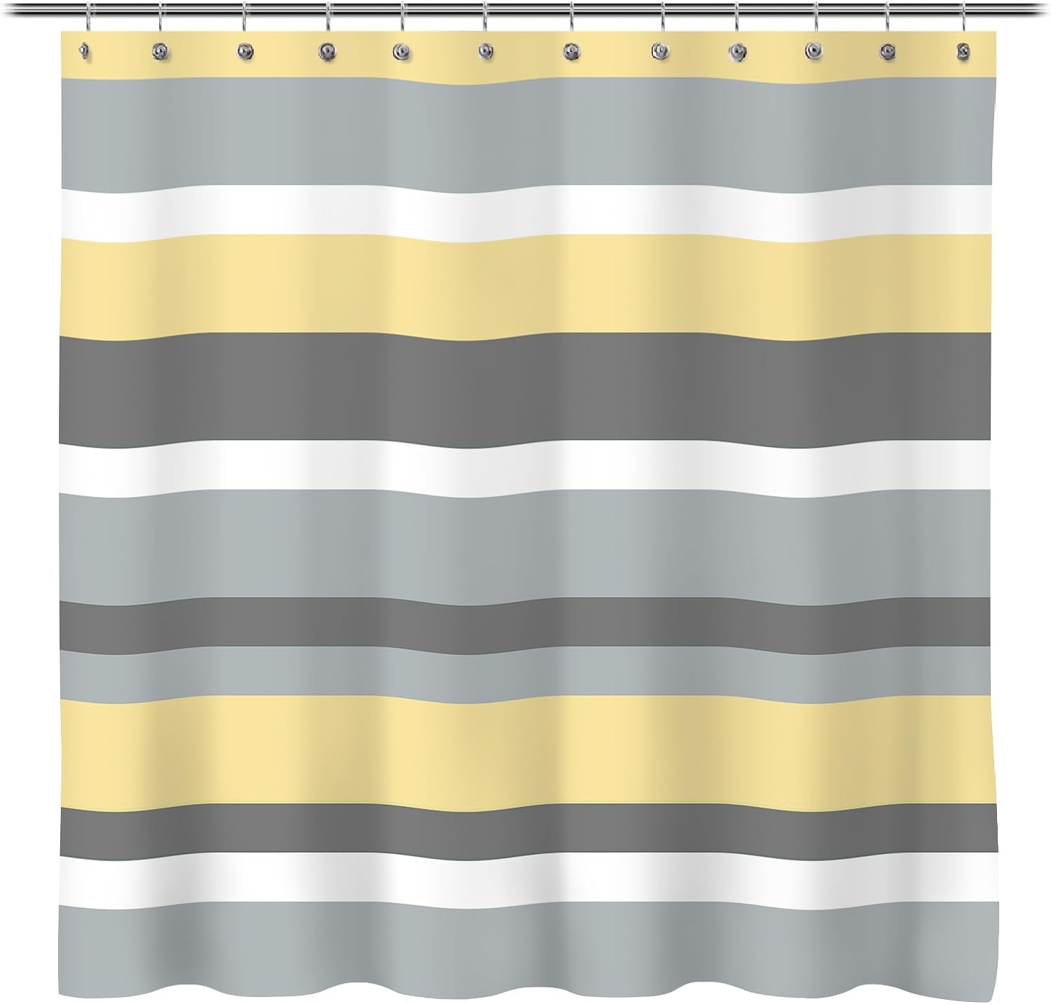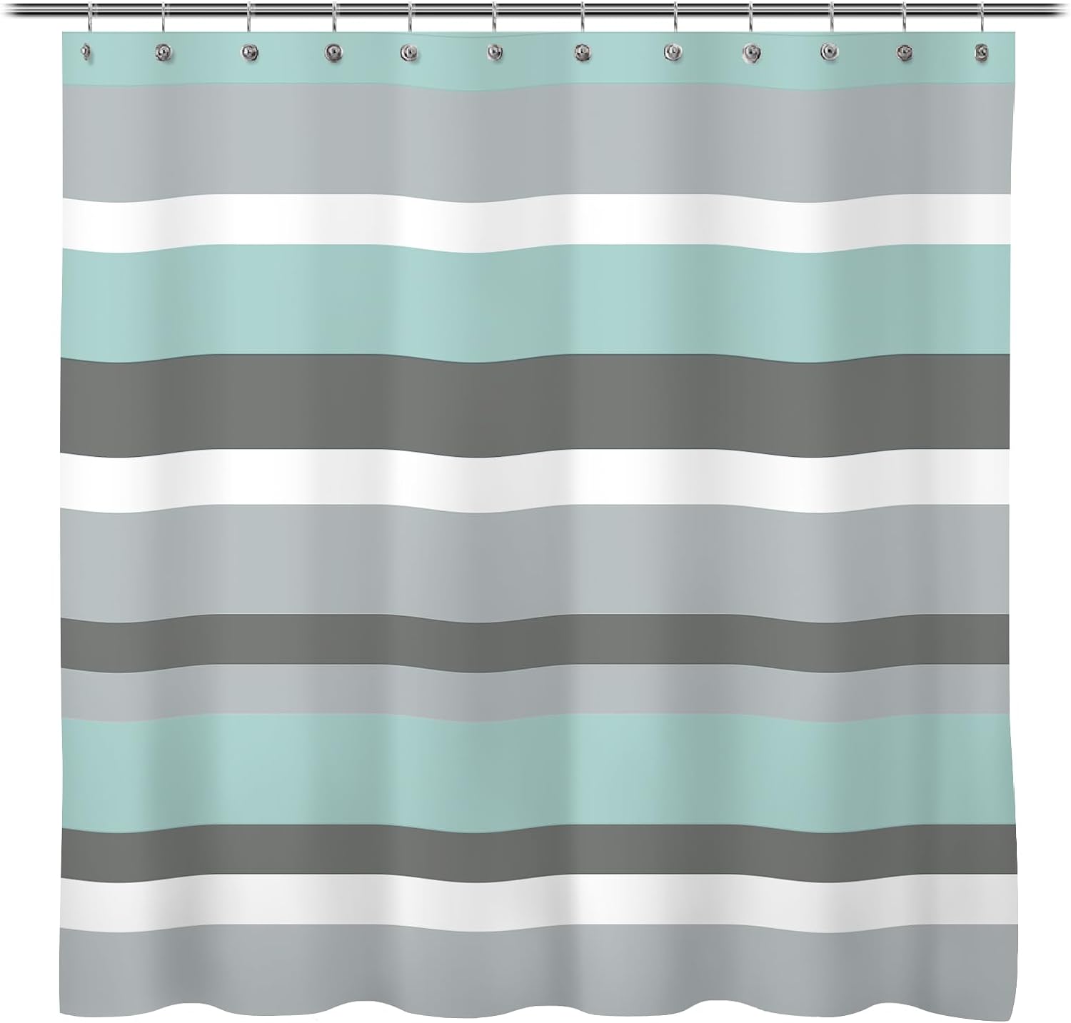 Sunlit Aqua Blue Gray Horizontal Stripes Water-Repellent Fabric Shower Curtain with Reinforced Metal Grommets Refreshing Striped Design Bathroom Decor