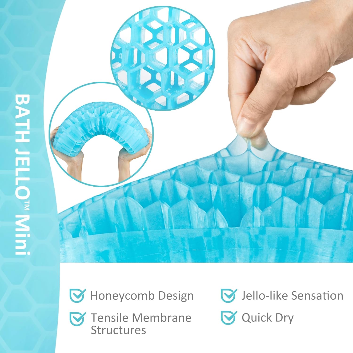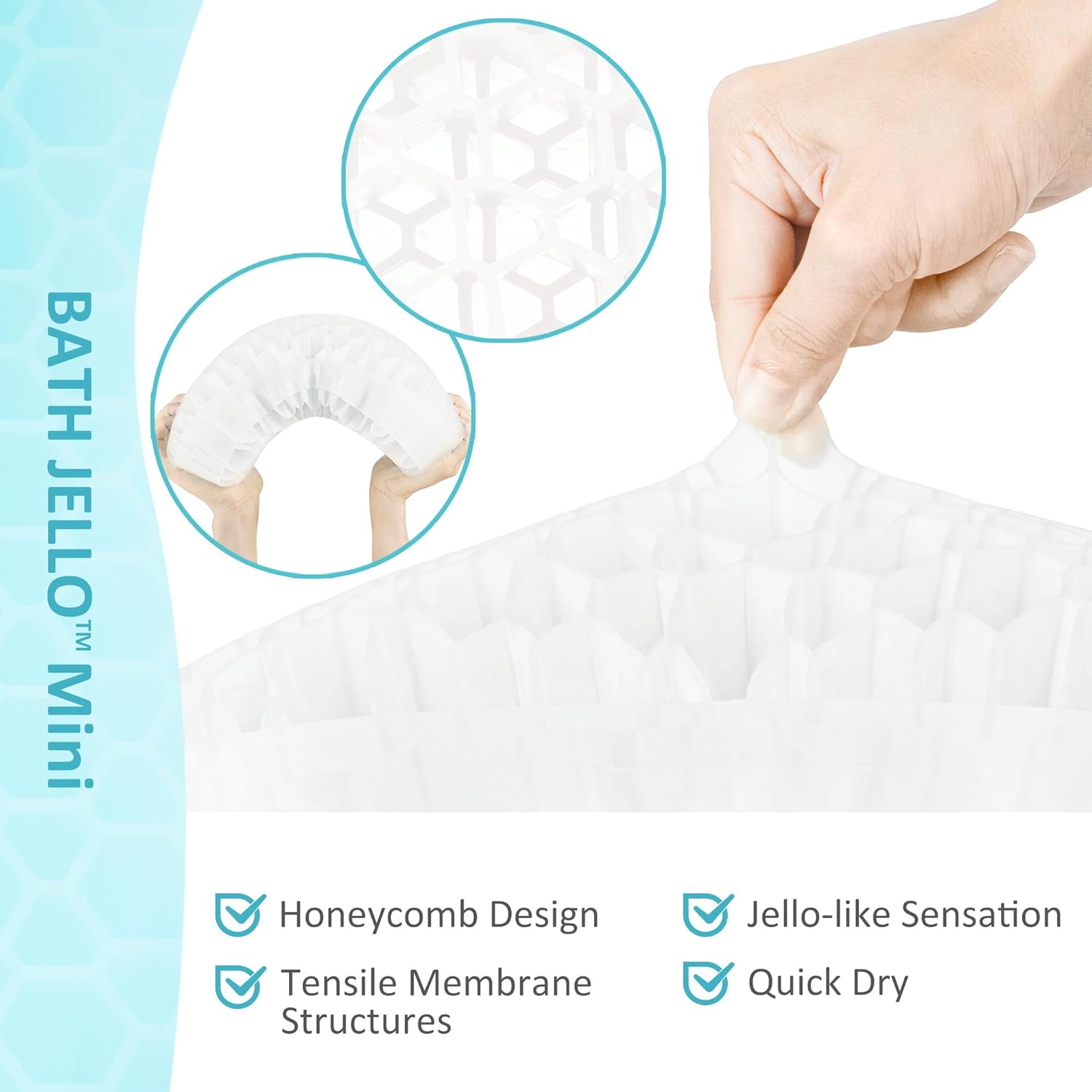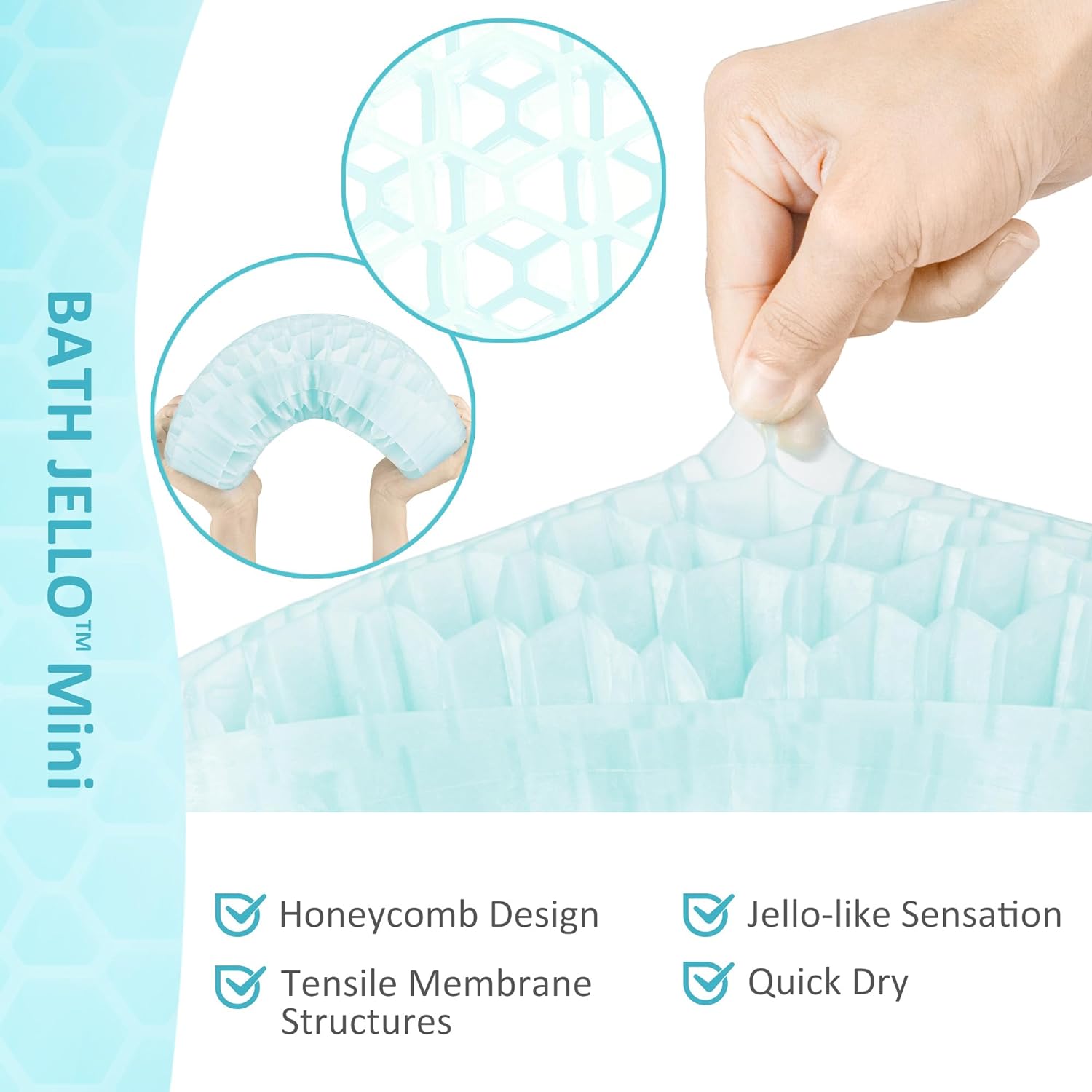 • [ Upgraded Honeycomb Structure ] Bath Jello features a double-layered honeycomb structure design, soft but firm enough to prevent and alleviate lower back pain when soaking. It doesn’t trap any bath water thanks to the hundreds of air channels. Simply leave it in the tub to air dry after every use. Before the first use, rinse with soap and water is recommended as the product is packaged with the environment in mind without plastic bags.