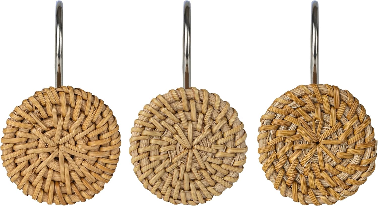 - Crafted from natural rattan, our shower curtain hooks are the perfect choice to elevate and refresh your space. *Please note: Because each hook is handcrafted from natural rattan, the color of each one may vary.*