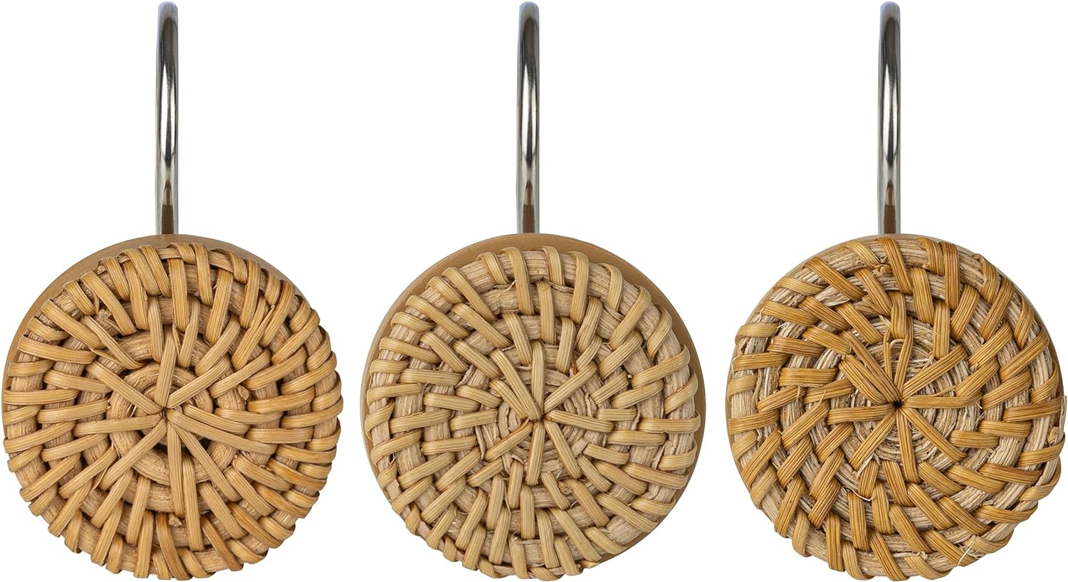 - Crafted from natural rattan, our shower curtain hooks are the perfect choice to elevate and refresh your space. *Please note: Because each hook is handcrafted from natural rattan, the color of each one may vary.*
