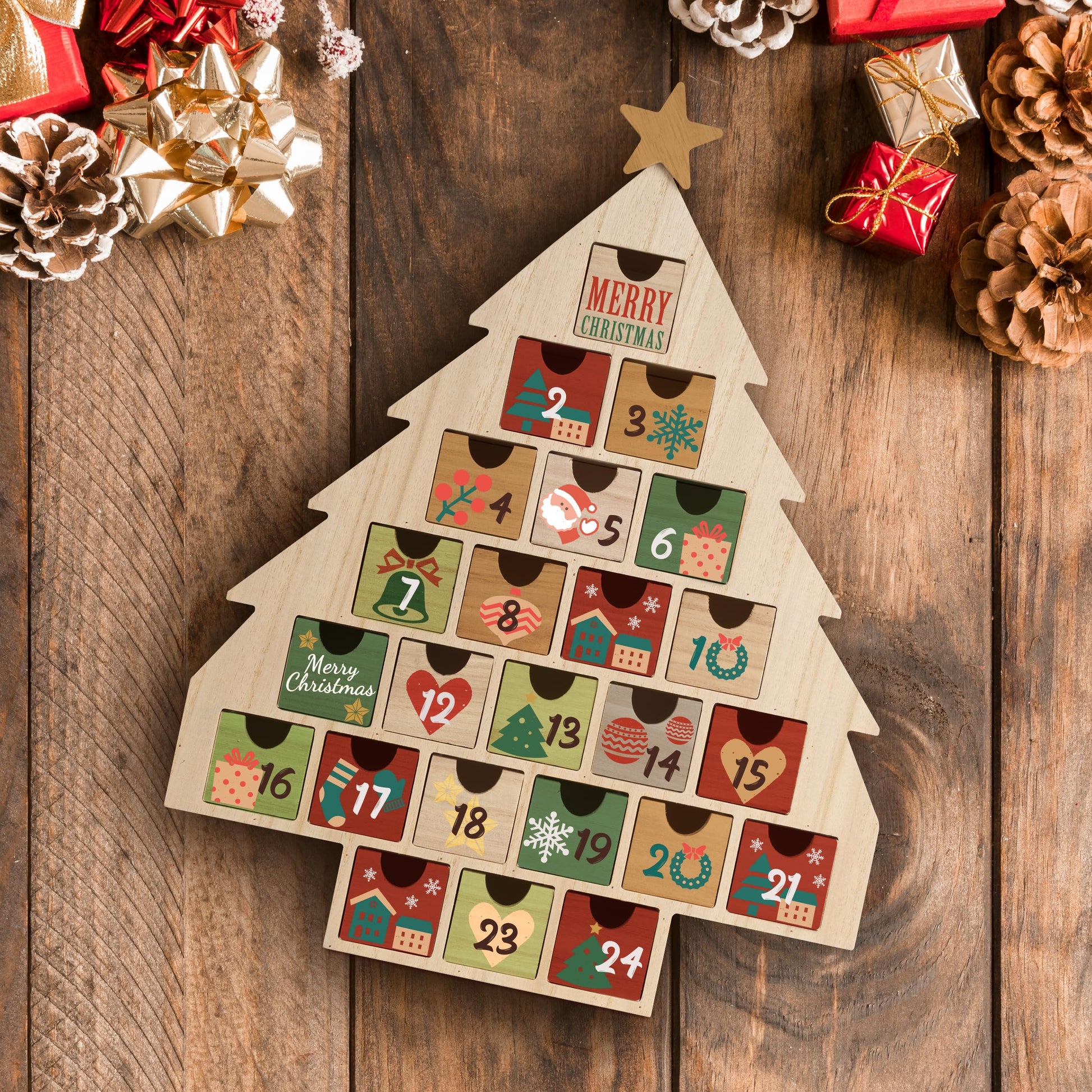 - [ Adorable Design ] Celebrate the 24 days of Advent with this Christmas tree, topped with a cute star. This wooden advent calendar adds a touch of warmth and sweetness for Christmas, bringing a smile to your face every day! Its simple and classic design blends seamlessly with other Christmas decorations, whether before or after your DIY touches. You can also decorate it just like a real Christmas tree, making it even more enjoyable and festive!