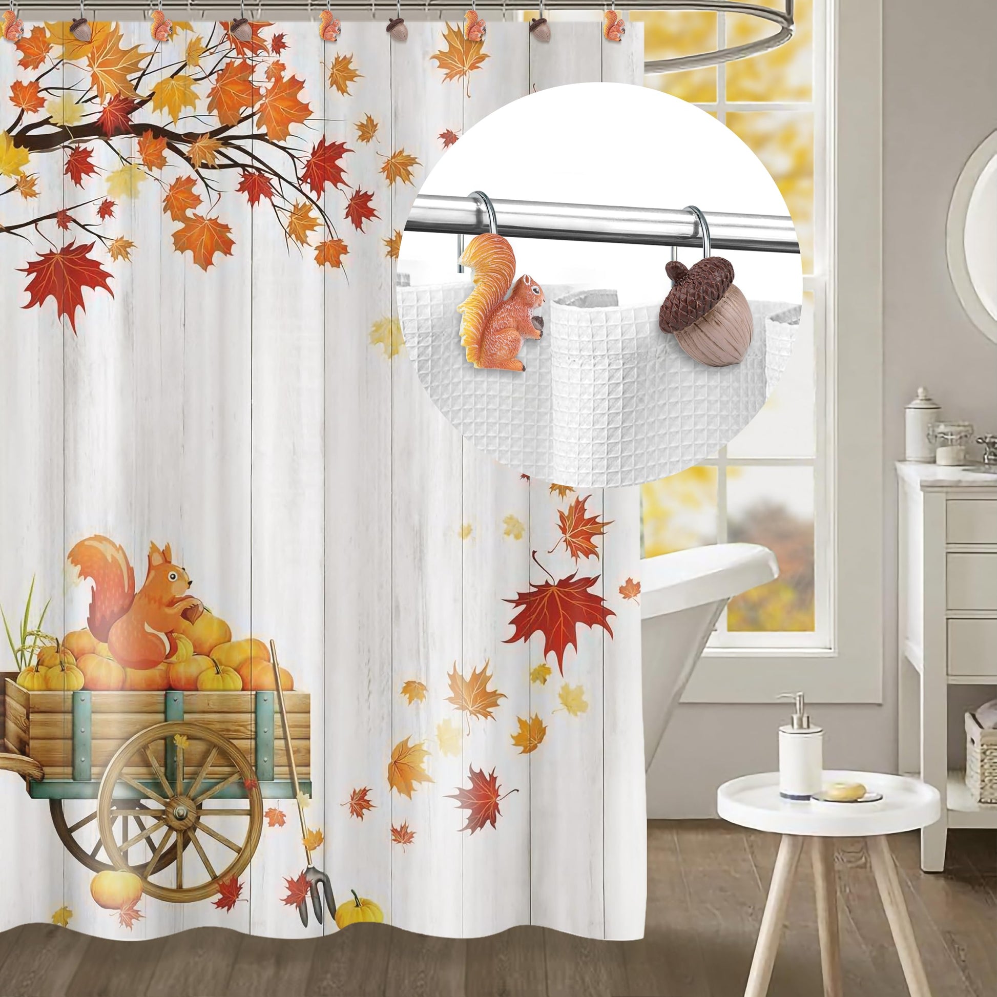 - 🐿️ The fall themed shower curtain hooks deliver more aesthetic vibe to your bathroom decor! Each set gets 2 designs (6 pcs/design).
