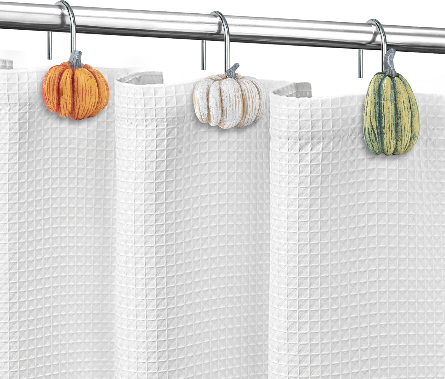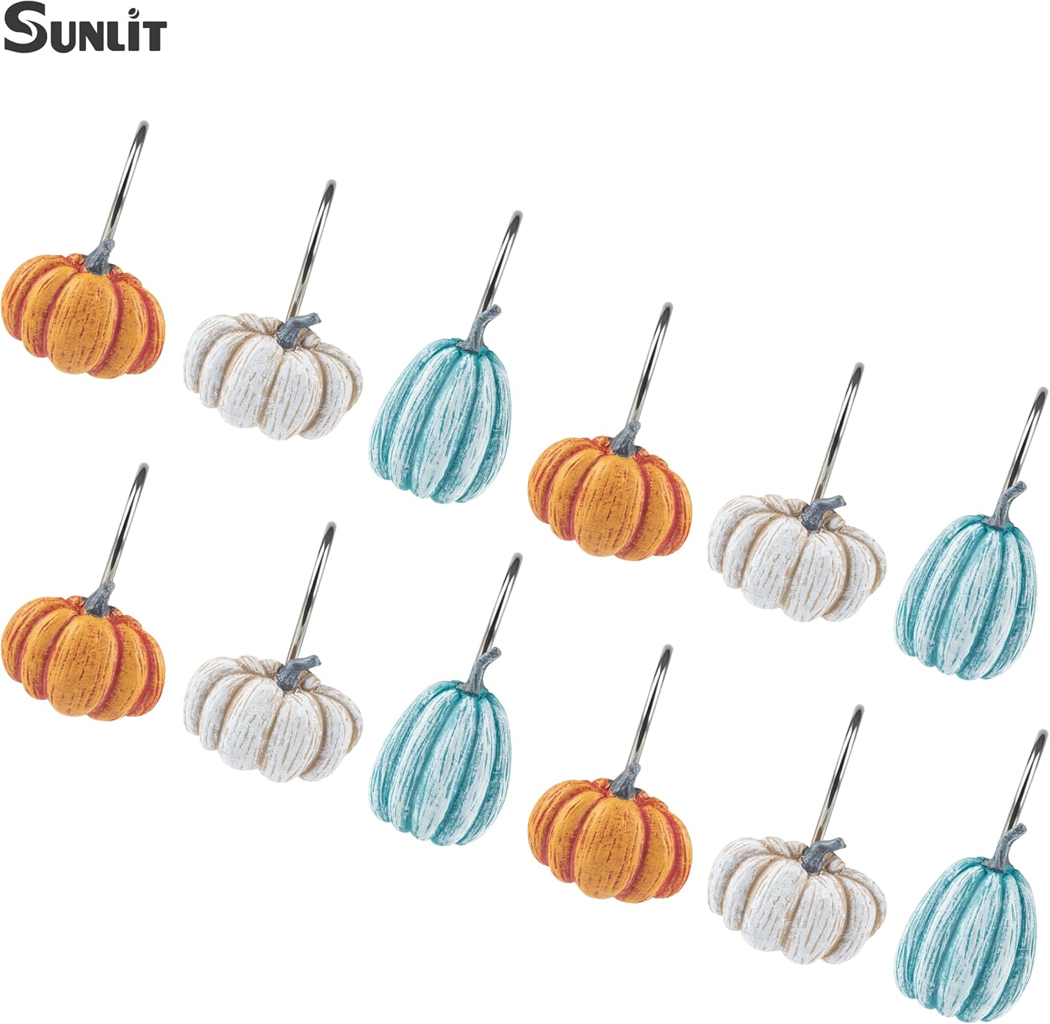 - 🎃 The pumpkin shower curtain hooks deliver more aesthetic vibe to your bathroom decor! Each set gets 3 designs (4 pcs/design).