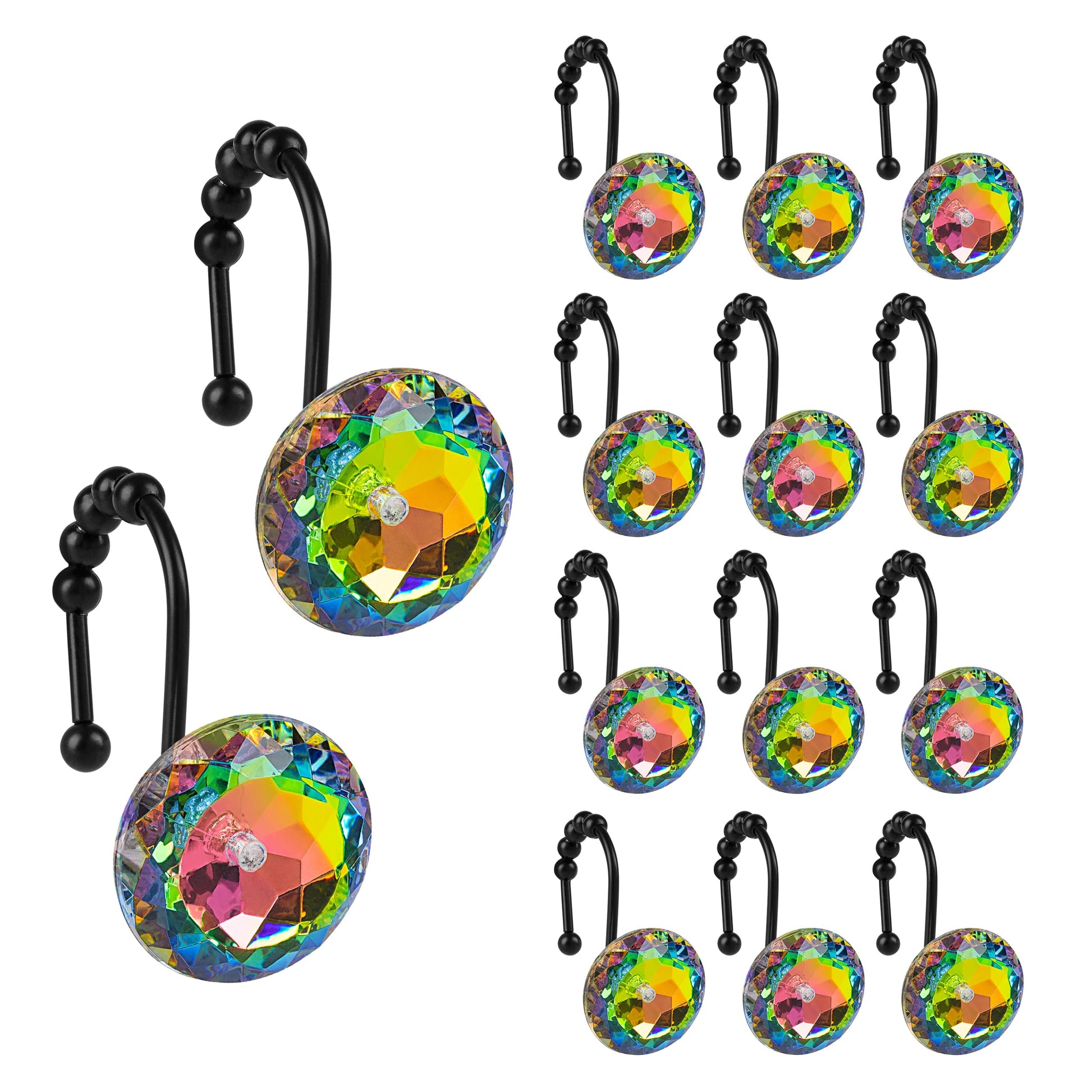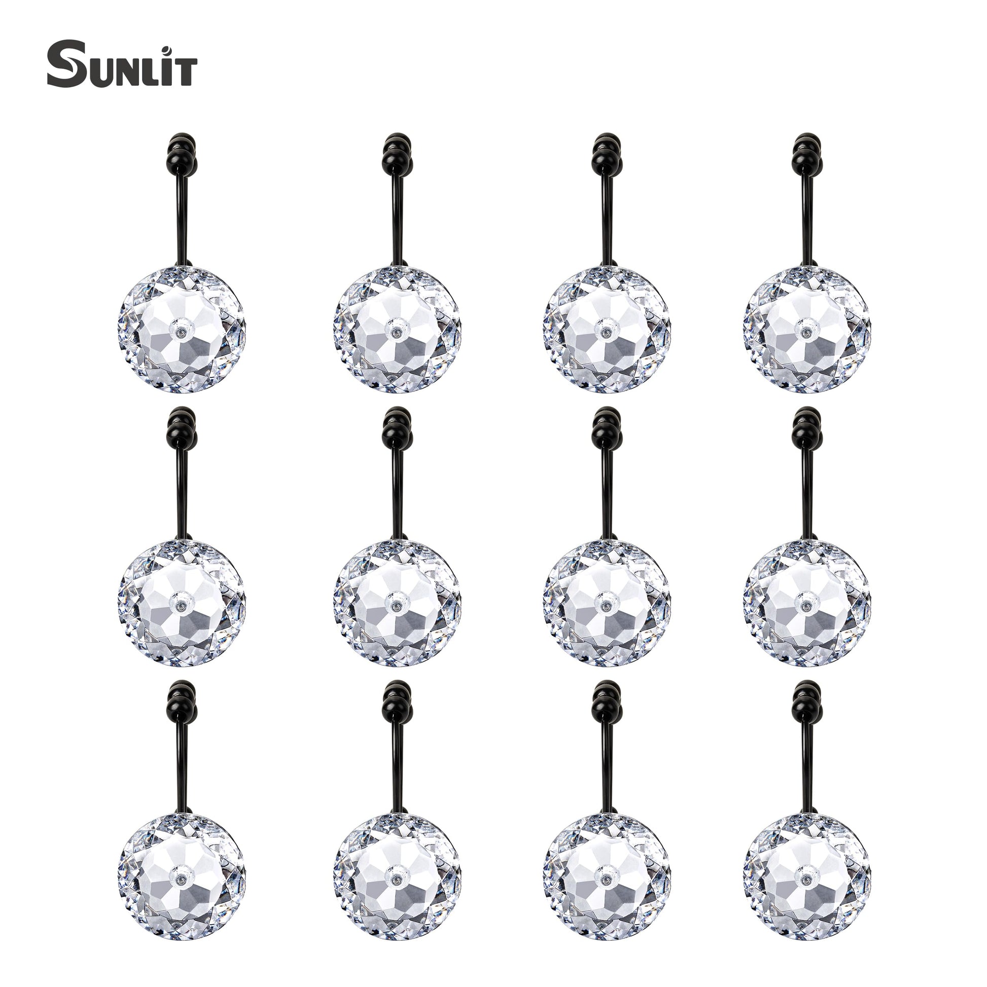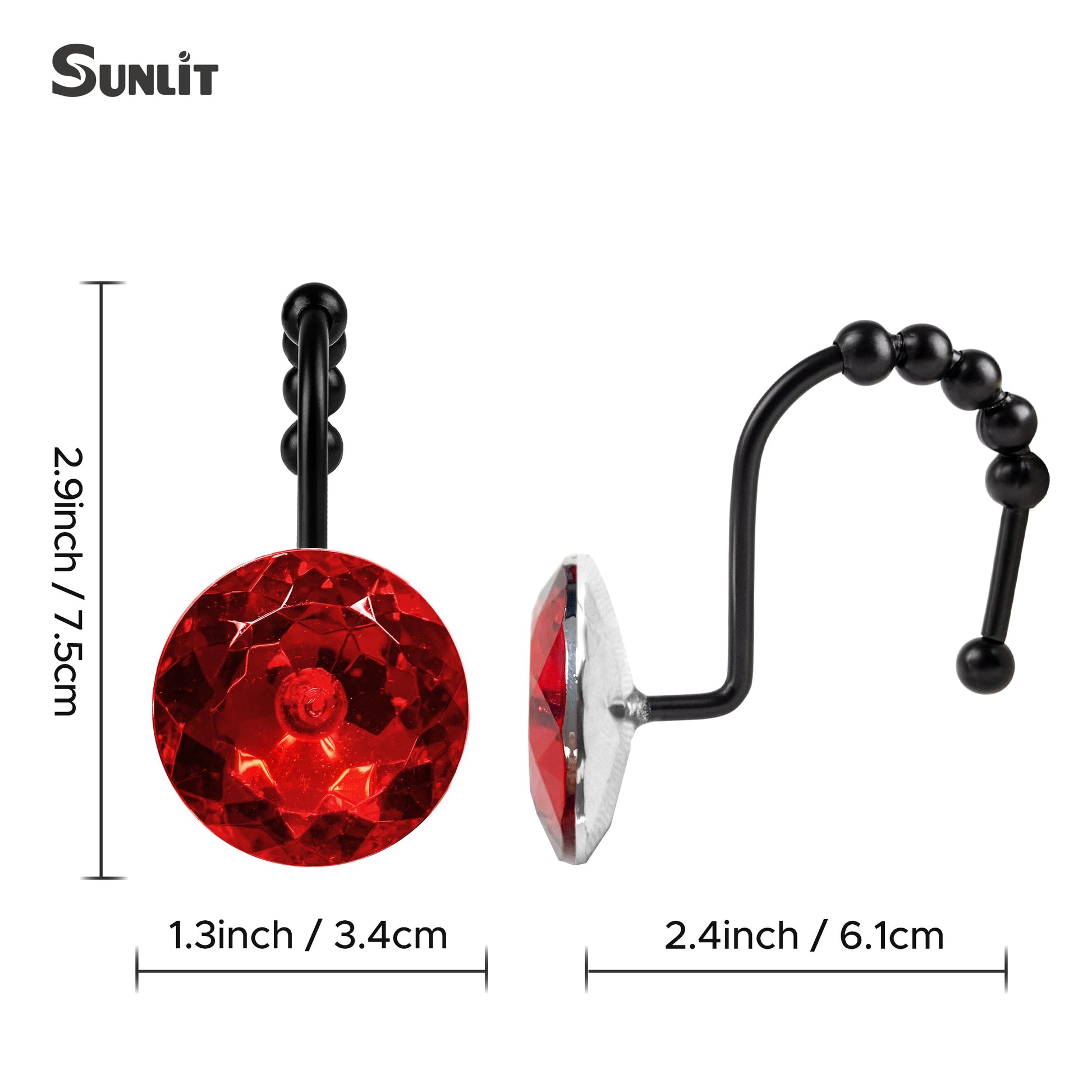 Sunlit Luxury Design Round Clear Diamond Crystal Gem Bling with Glide Balls Double Shower Curtain Hooks, Rust Proof Metal Rhinestones Glam Shower Curtain Rings-12 Pack