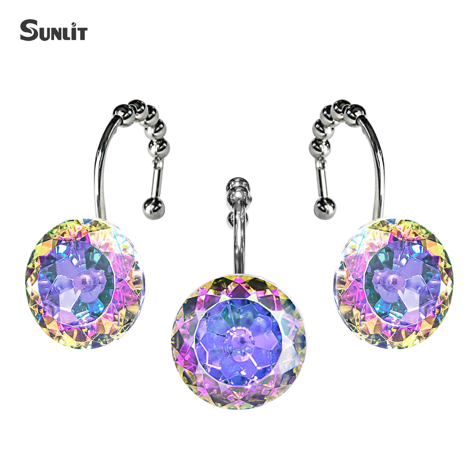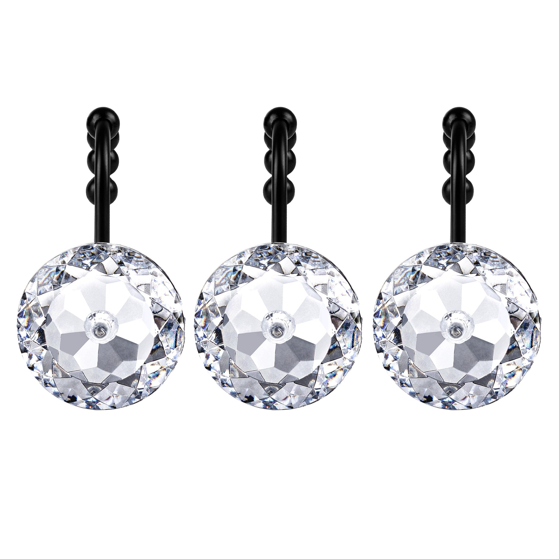 Sunlit Luxury Design Round Yellow Diamond Crystal Gem Bling with Glide Balls Shower Curtain Hooks, Rust Proof Metal Rhinestones Glam Shower Curtain Rings-12 Pack