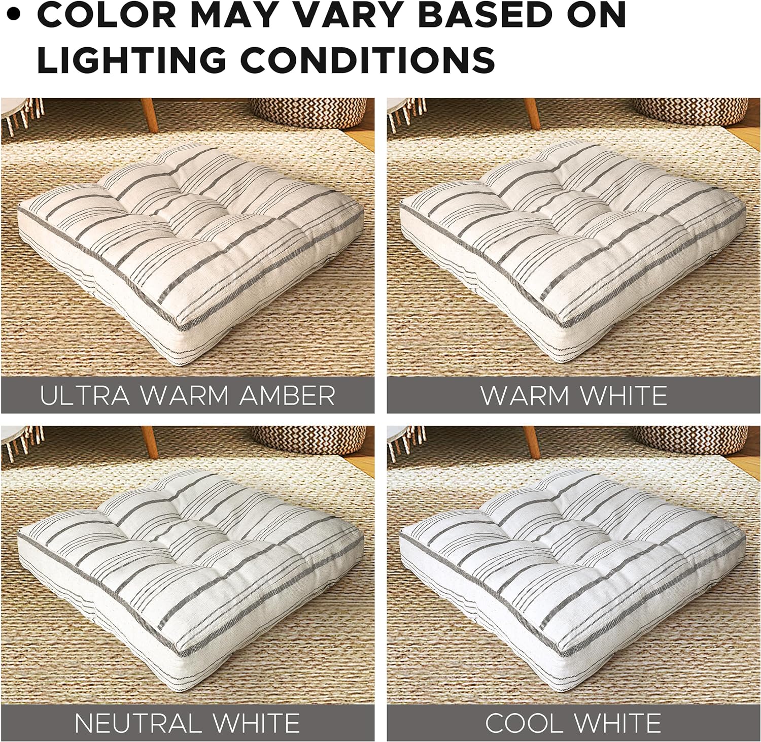 - [ Premium Material ] Floor pillows are made of high-quality linen fabric and filled with eco-friendly PP-cotton. They are not easily deformed and offer a soft, breathable, and elastic feel. The four stitching points are designed to prevent deformation while adding a chic outlook. These pillows are both fluffy and firm, and their thickness is consistent and flat.