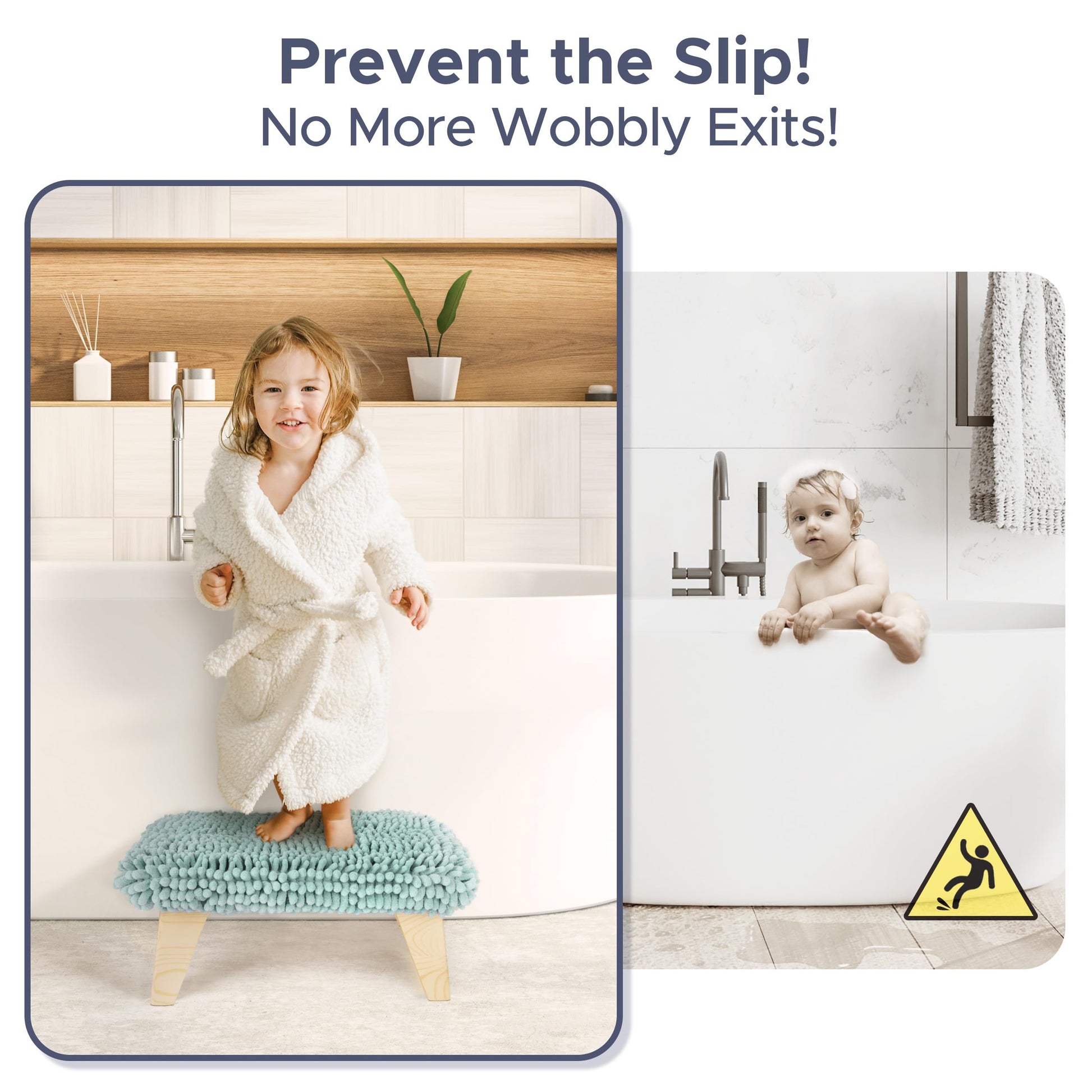- [ Innovative Design ] The patented design of the Sunlit step stool is crafted for comfort and functionality, guaranteeing both sturdiness and stability. The chenille cover offers a consistently warm and soft touch, ensuring your feet get dry immediately and are not chilled by the solid wood when stepping on it after a bath or getting out of the bathtub or bed.