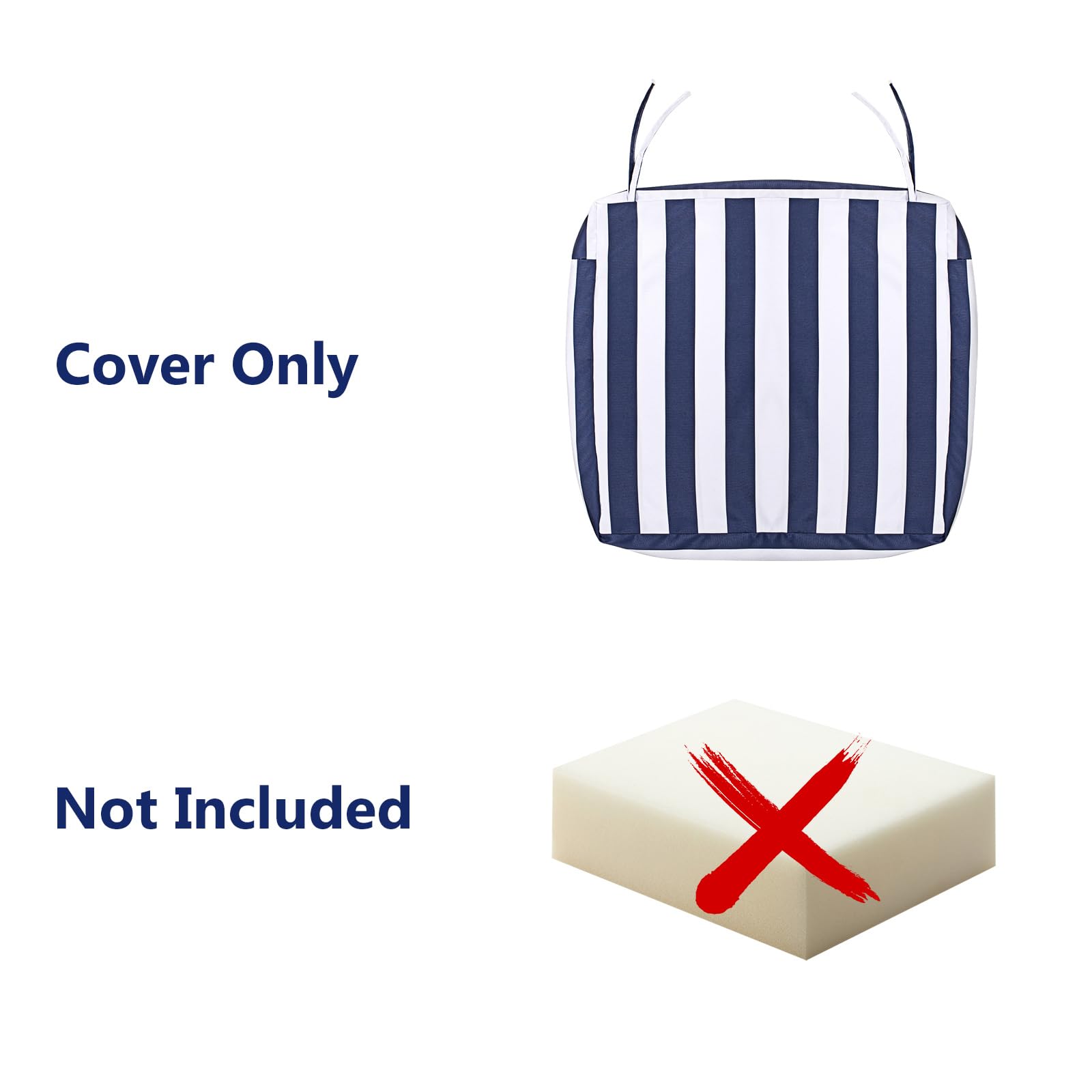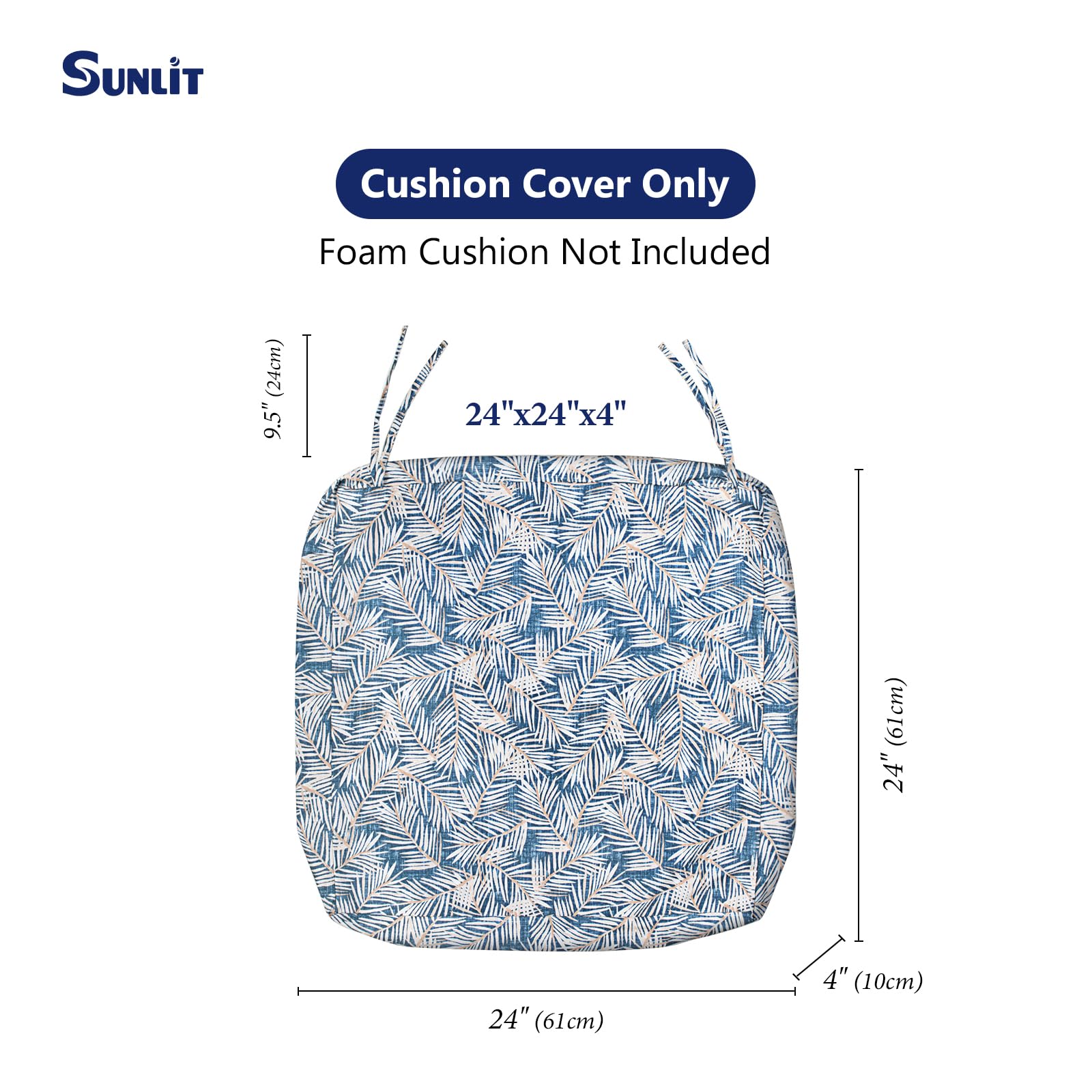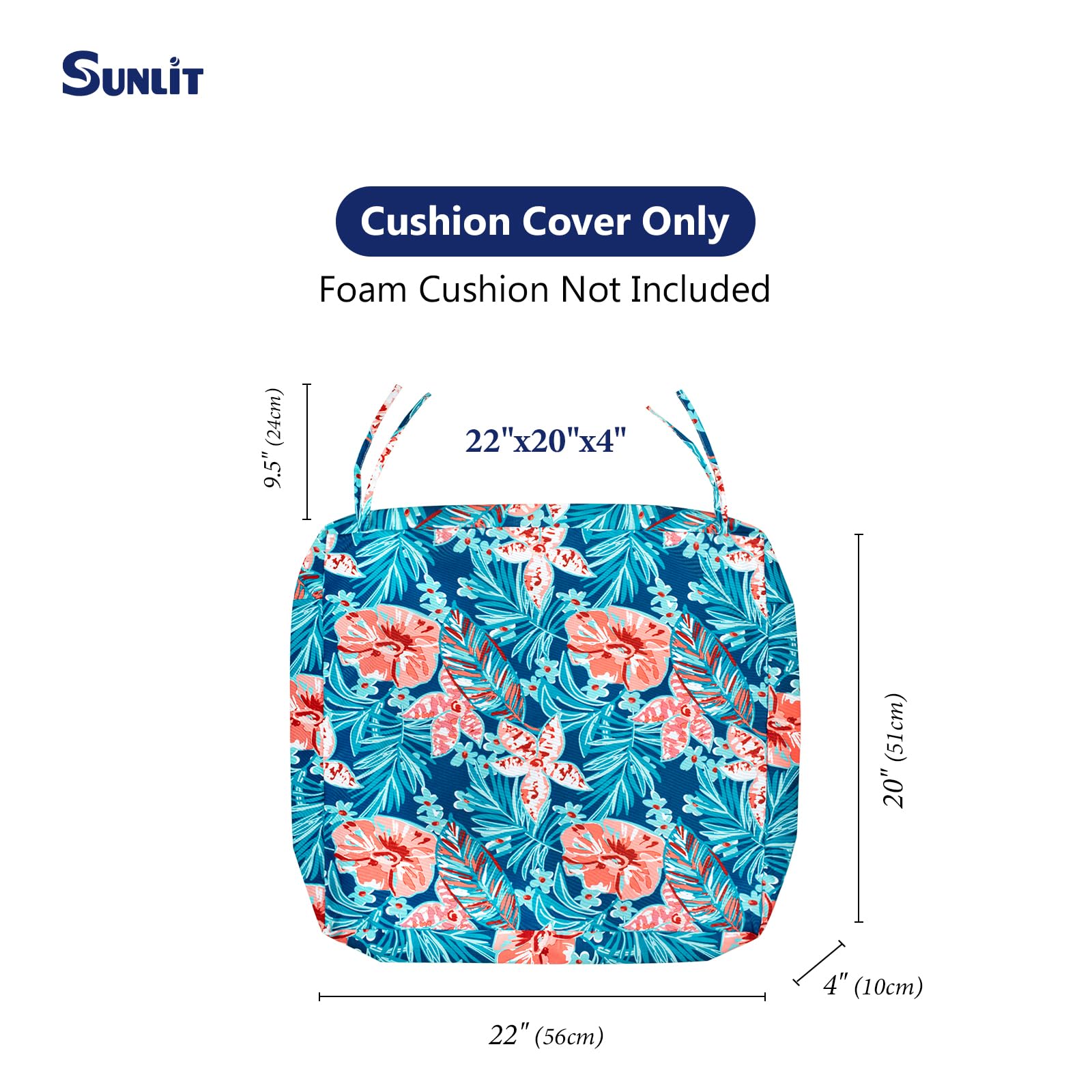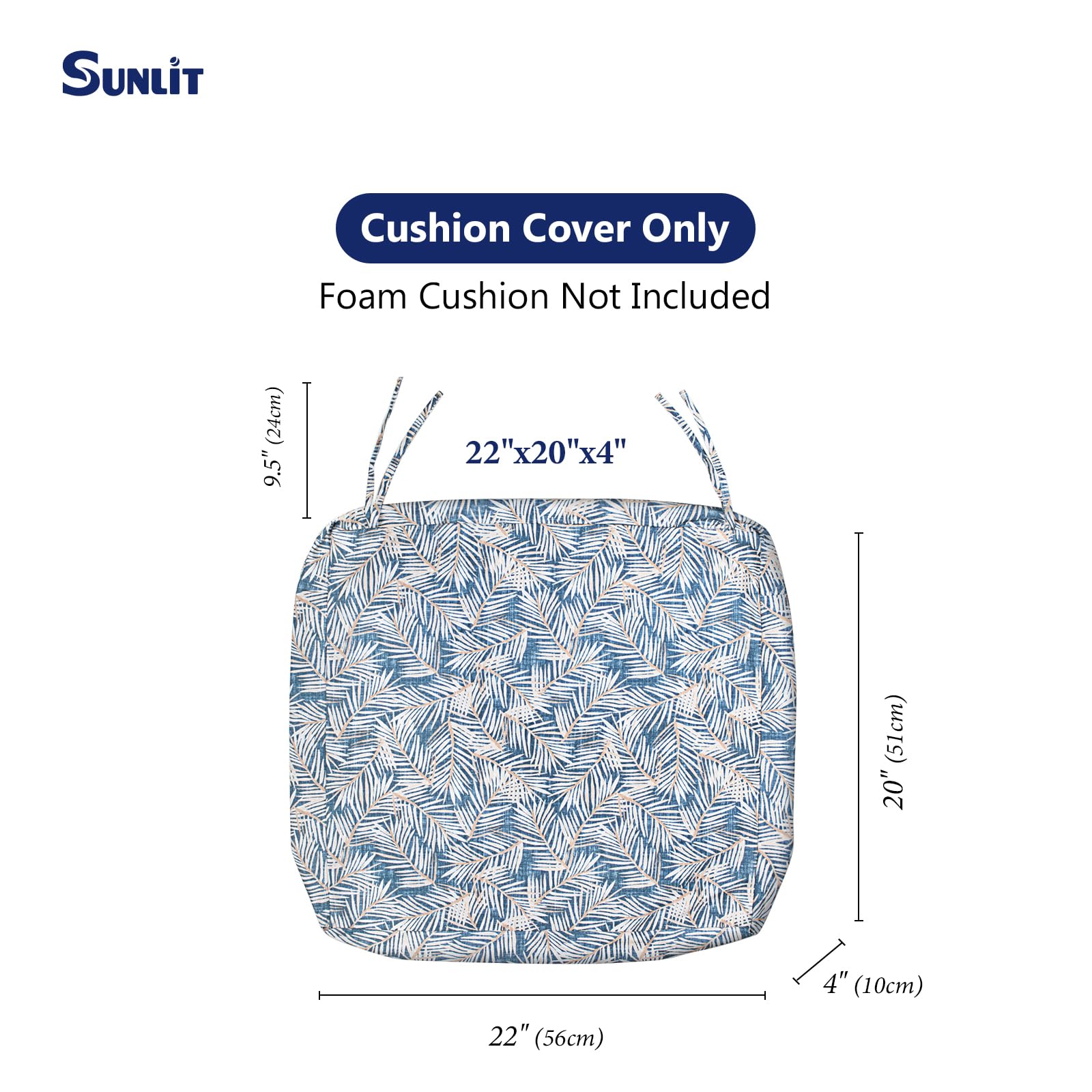 [ Dimensions ] The outdoor cushion cover measures about 42"L x 18"W x 3"H. The attached ties (about 9.5” long) on both sides secure the cushion to the chair and keep it in place, so you can move around and it will support you in any position. Please measure your cushion filler size carefully before placing the order. COVERS ONLY, INSERT NOT INCLUDED.