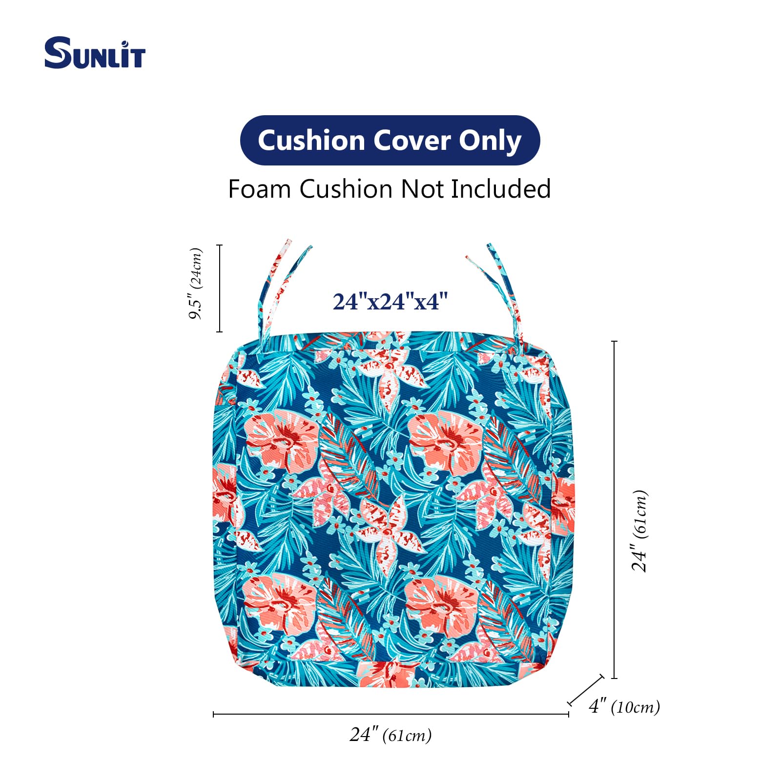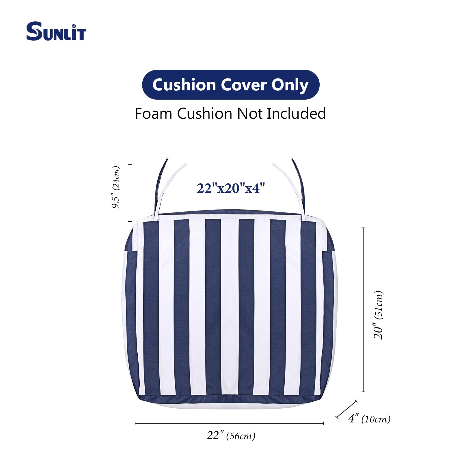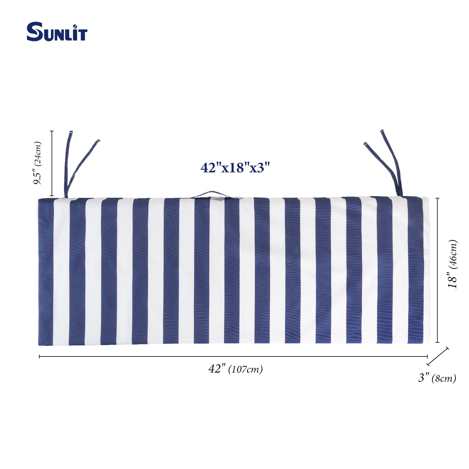 [ Dimensions ] The outdoor cushion cover measures about 42"L x 18"W x 3"H. The attached ties (about 9.5” long) on both sides secure the cushion to the chair and keep it in place, so you can move around and it will support you in any position. Please measure your cushion filler size carefully before placing the order. COVERS ONLY, INSERT NOT INCLUDED.