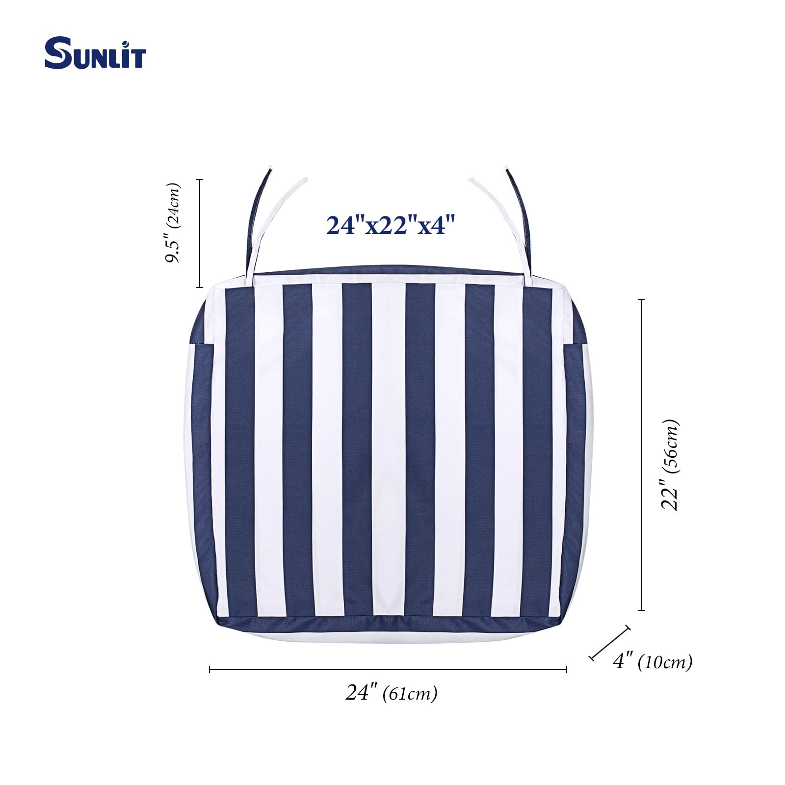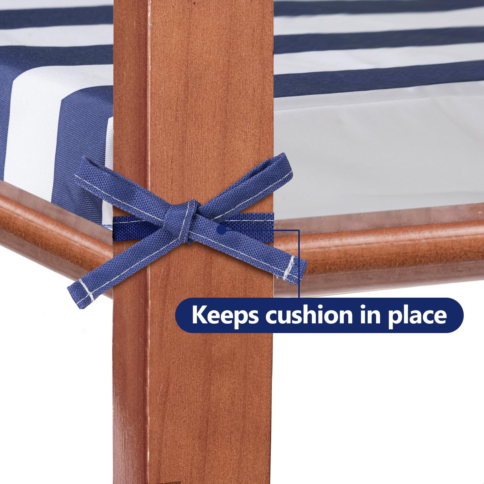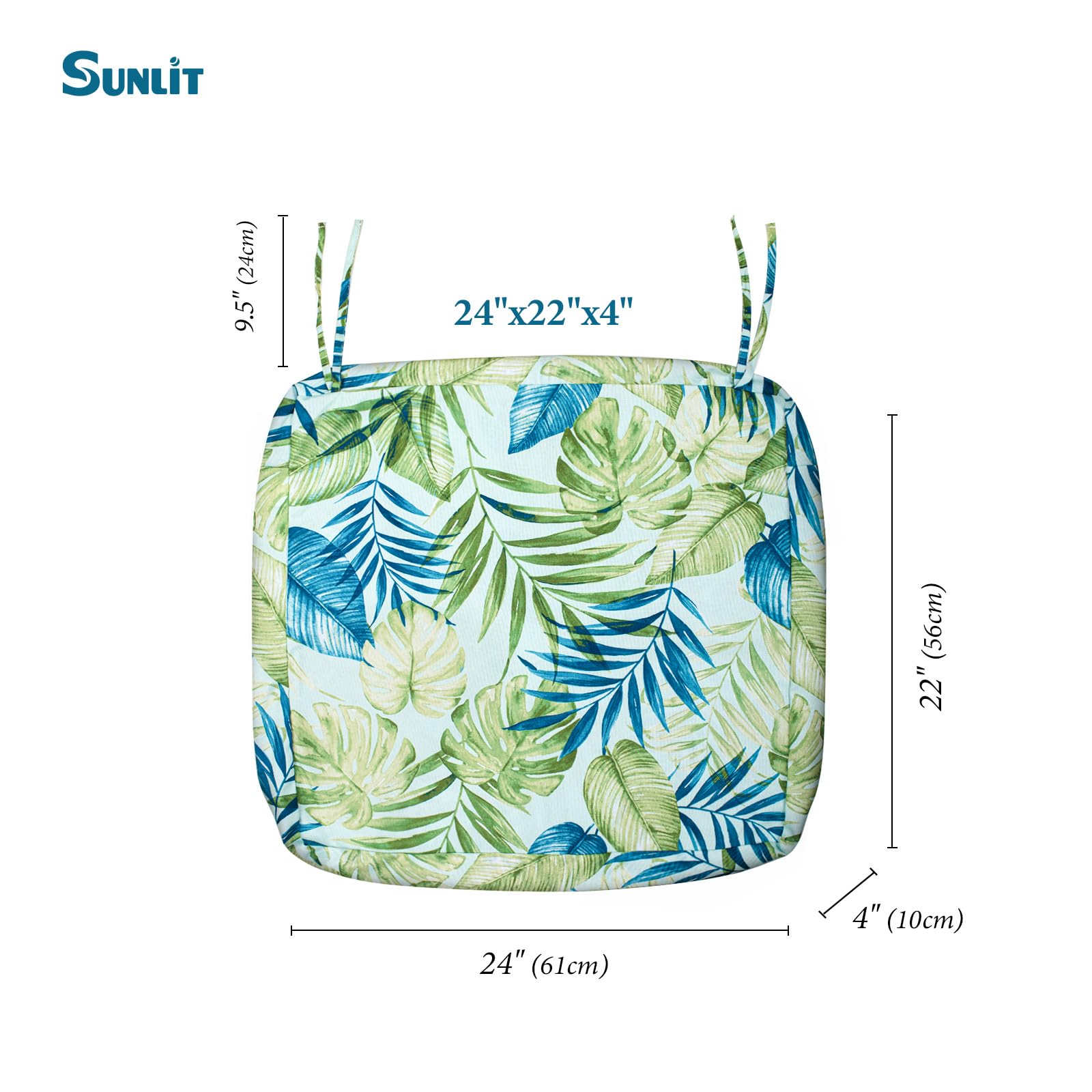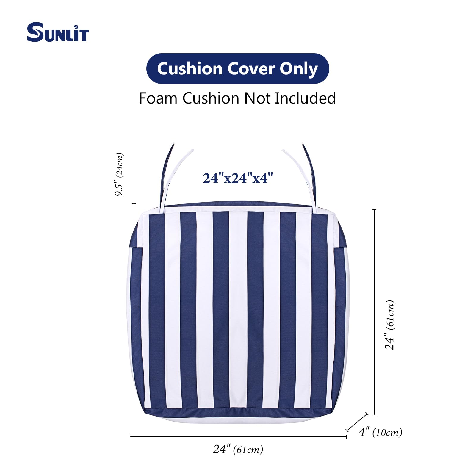 [ Dimensions ] The outdoor cushion cover measures about 42"L x 18"W x 3"H. The attached ties (about 9.5” long) on both sides secure the cushion to the chair and keep it in place, so you can move around and it will support you in any position. Please measure your cushion filler size carefully before placing the order. COVERS ONLY, INSERT NOT INCLUDED.