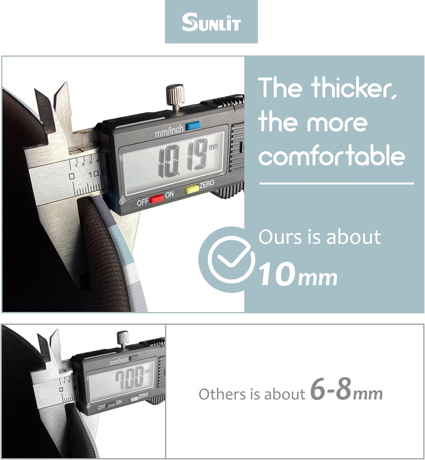 - [Soft and Thicker Cushioned] SUNLITE kitchen mats are made of premium 10MM PVC material, phthalate-free and latex-free. This material gets great strength and even it is extended or put under weights, it will keep its shape. The middle part of our carpets are filled with memory foam, soft and comfortable to step on. Great for someone who gets aching feet and backs that can't hold up to a hard floor.