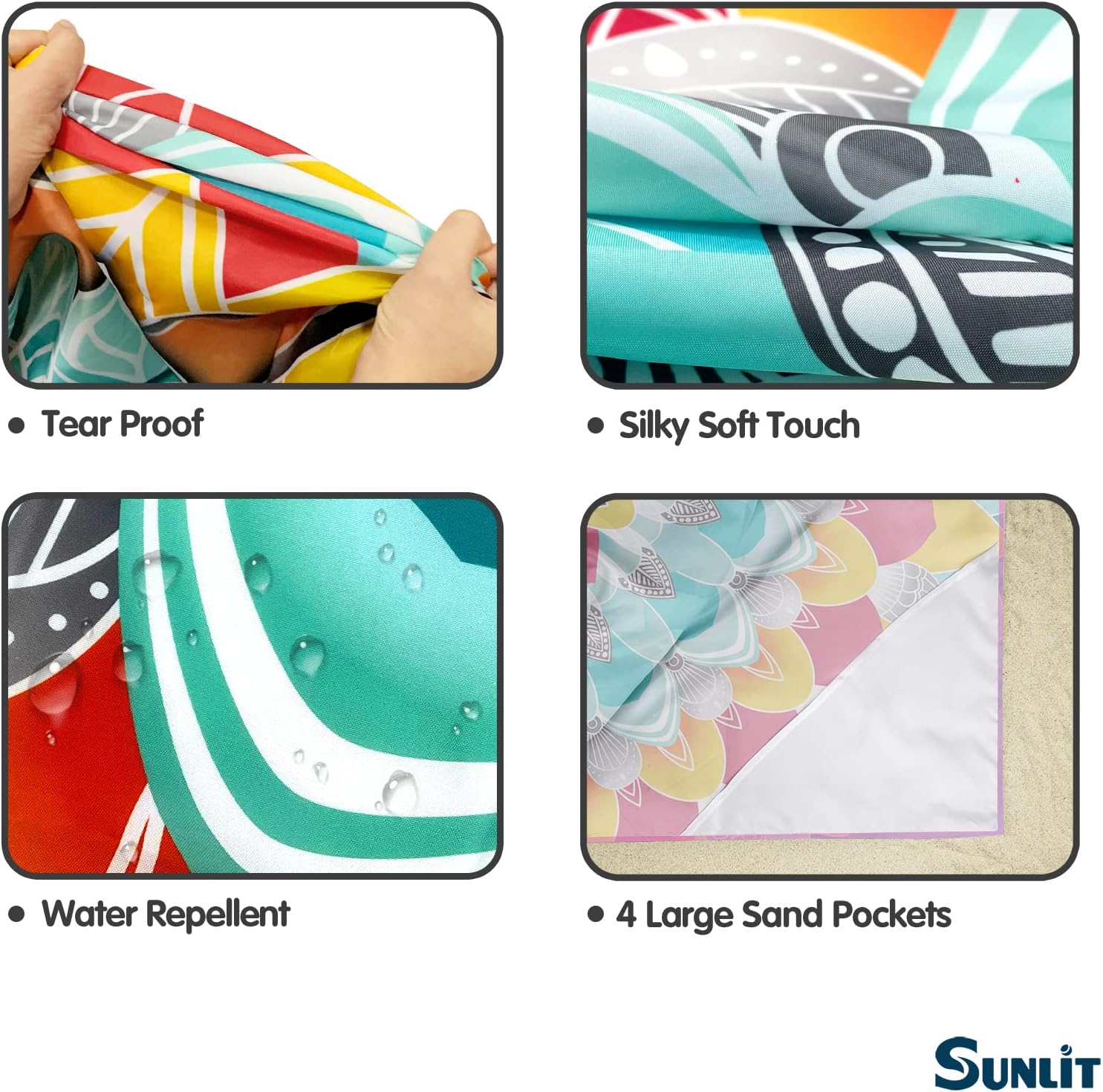 - [ Eye-Catching Design ] - The uniquely designed beach blanket from Sunlit will make you stand out on the beach! You can also use it as photo backdrop, perfect for selfies and posts on Instagram, Facebook, Snapchat, Twitter and Youtube.