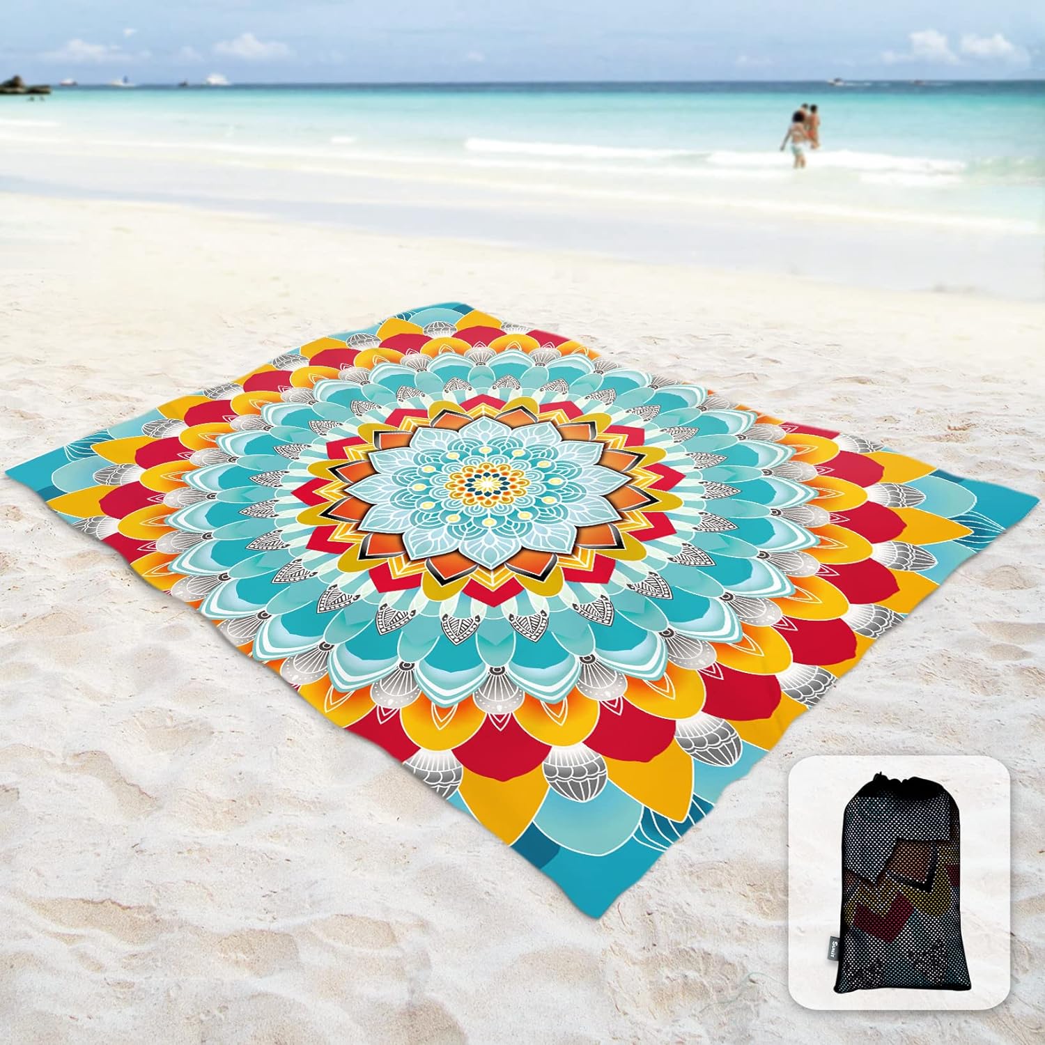 - [ Better Material, Skin Friendly ] - The Silky Cool Soft Fabric allows you to lie comfortably and won't irritate your skin. Also it’s easily cleaned, just brush off all the sand with no effort! The beach blanket is made of sand resistant, water-repellent, odorless fabrics meaning you won't have to dry it off after your trip to the beach.