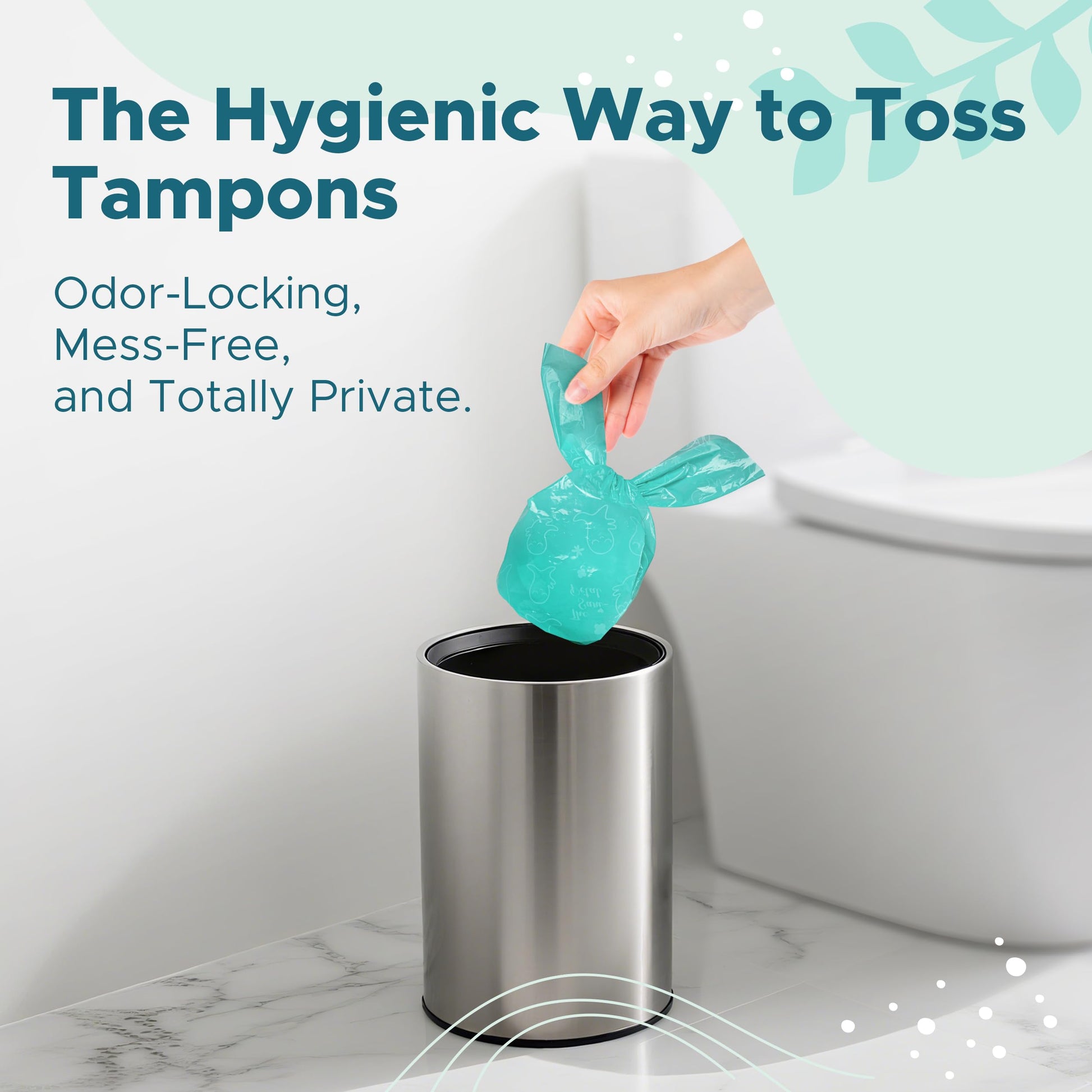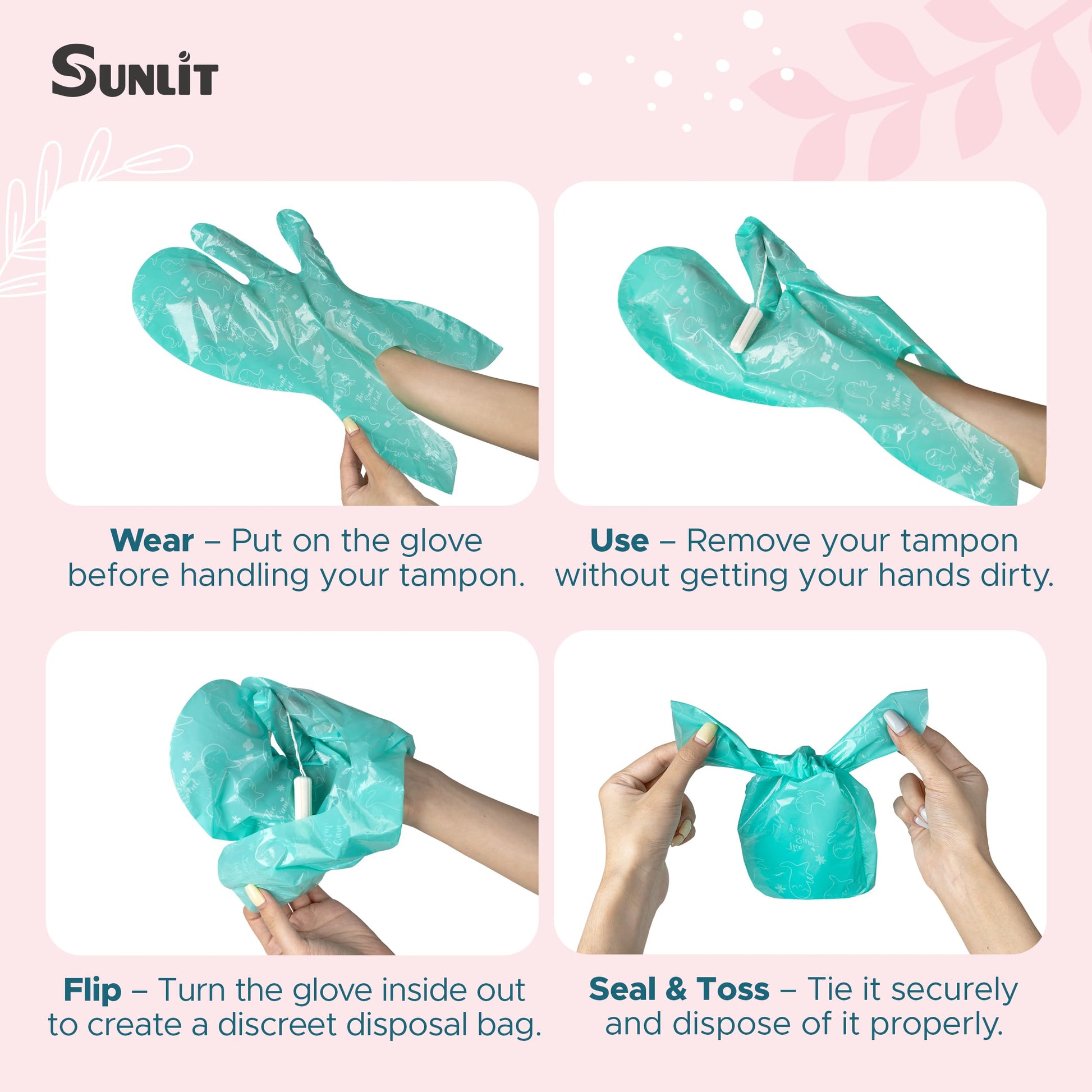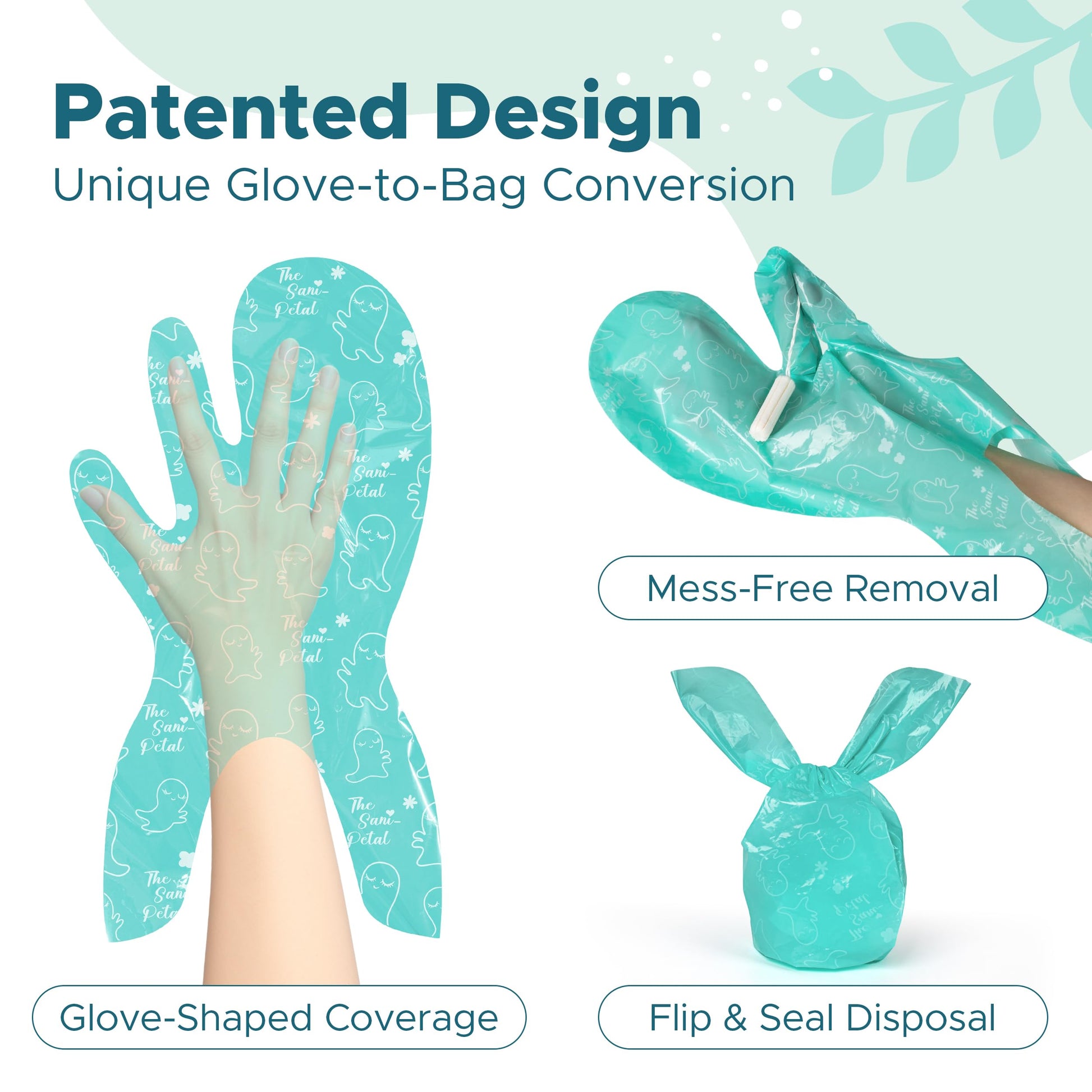 - Mess-Free Tampon Changes: Protect your hands every time you insert or remove a tampon with our patented glove-to-bag design. No more worrying about stains or sticky residue — stay clean and confident, even in public restrooms