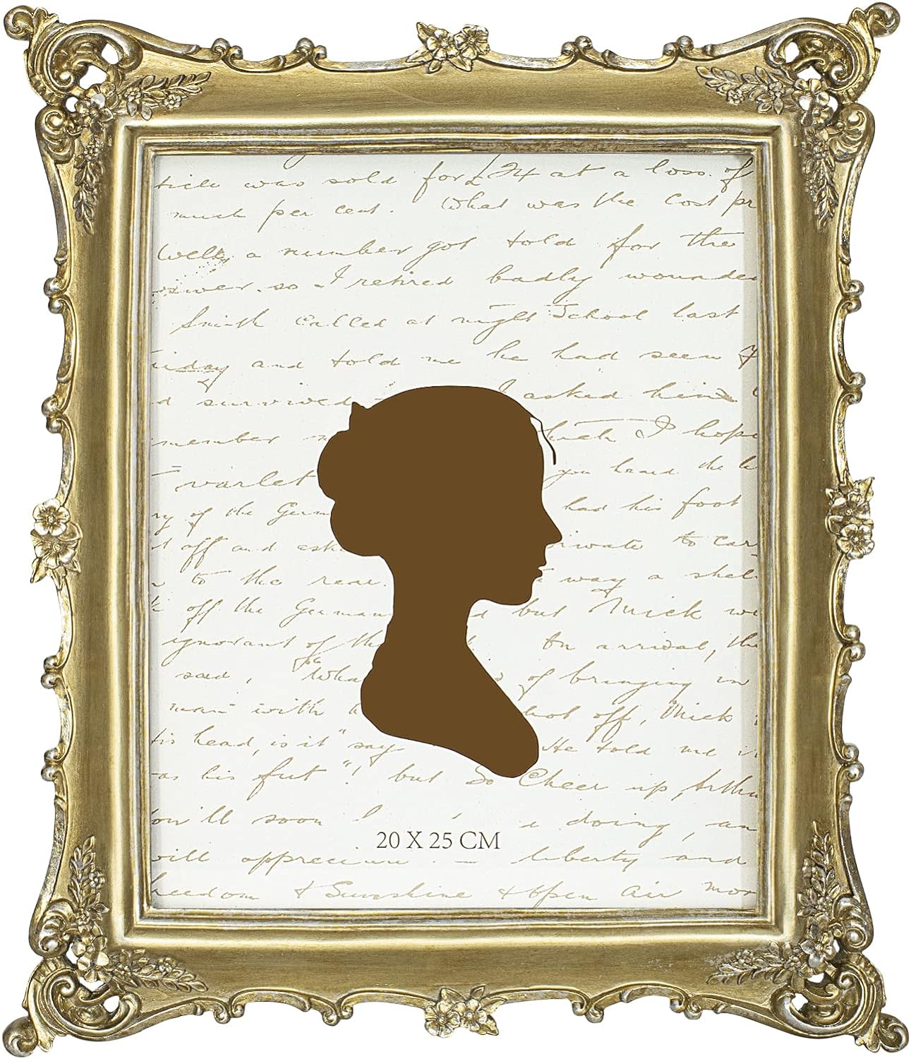 - [Elegant Vintage Sculpture] Ornately designed polyresin brushed with elegant gold. Timeless style will be added to your photo display with this charming collection inspired by vintage fashion.