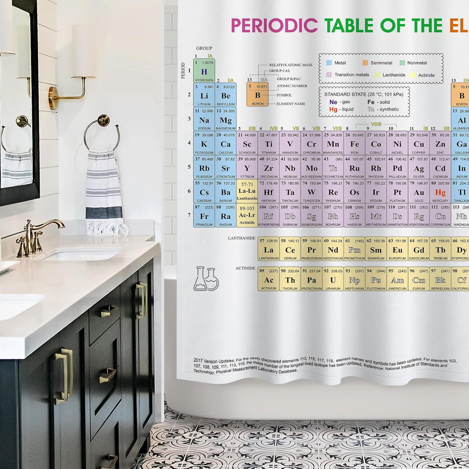 Updated Periodic Table of Elements Fabric Shower Curtains for Chemistry Students and Teacher Use as Poster.